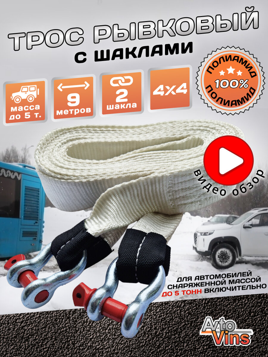 Ниже Вы можете прочитать отзывы на Трос рывковый полиамид 12т 9 м с шаклами (скоба-скоба ), для авто до 5 тонн, AvtoVins, ознакомится с подробными характеристиками, посмотреть интересные обзоры и фотографии на Трос рывковый полиамид 12т 9 м с шаклами (скоба-скоба ), для авто до 5 тонн, AvtoVins.