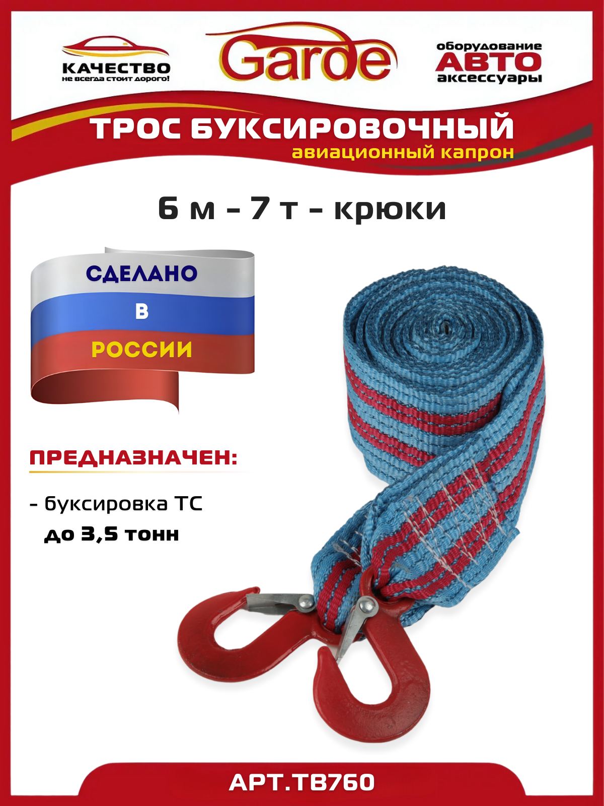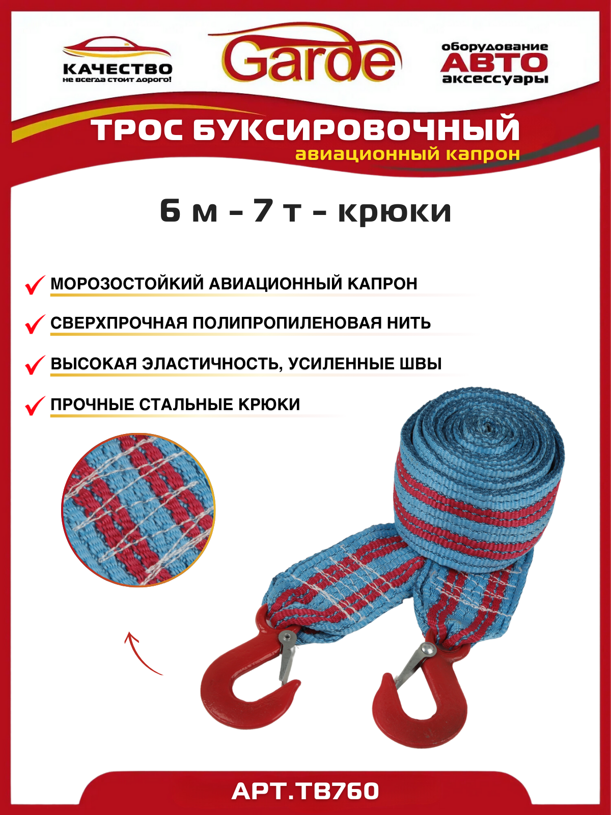 Трос буксировочный 7 т крюки 6 м авиационный капрон в сумке + перчатки интересное: