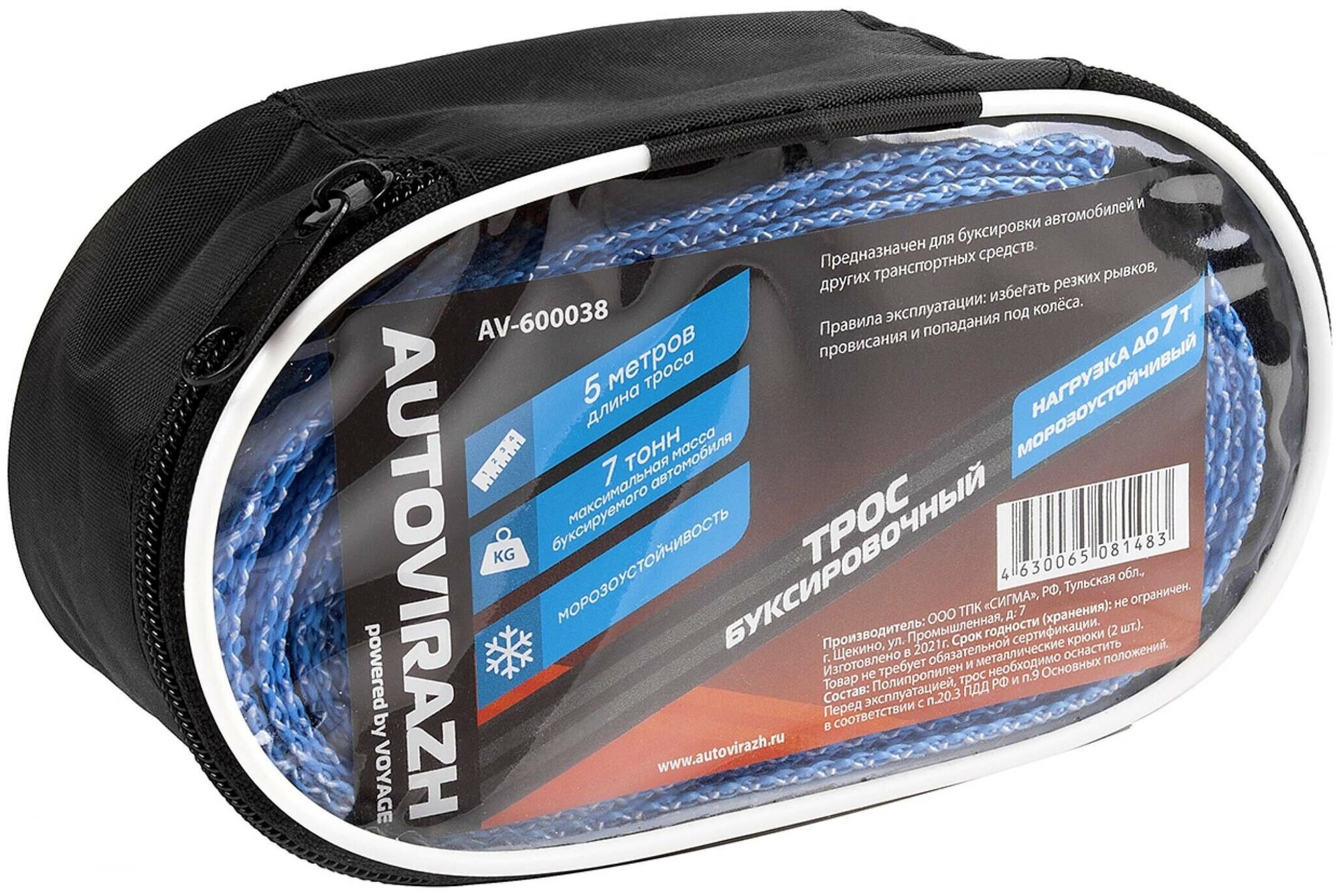 AUTOVIRAZH Буксировочный трос AUTOVIRAZH 7 т 5 м - лента с 2 крюками в чехле на молнии AV-600038 интересное: