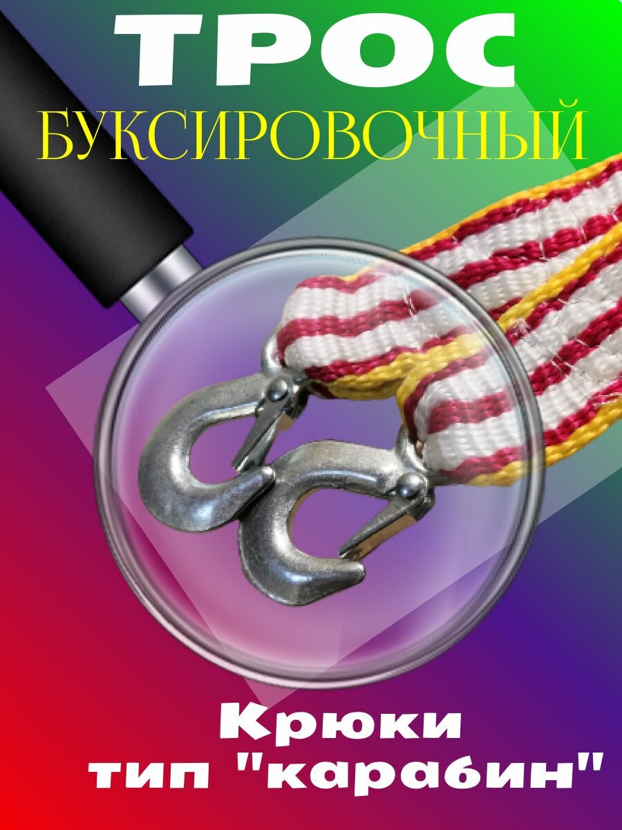 Трос буксировочный для автомобиля 12 т (12 тонн) 5 метров лента с 2 крюками карабинами интересное: