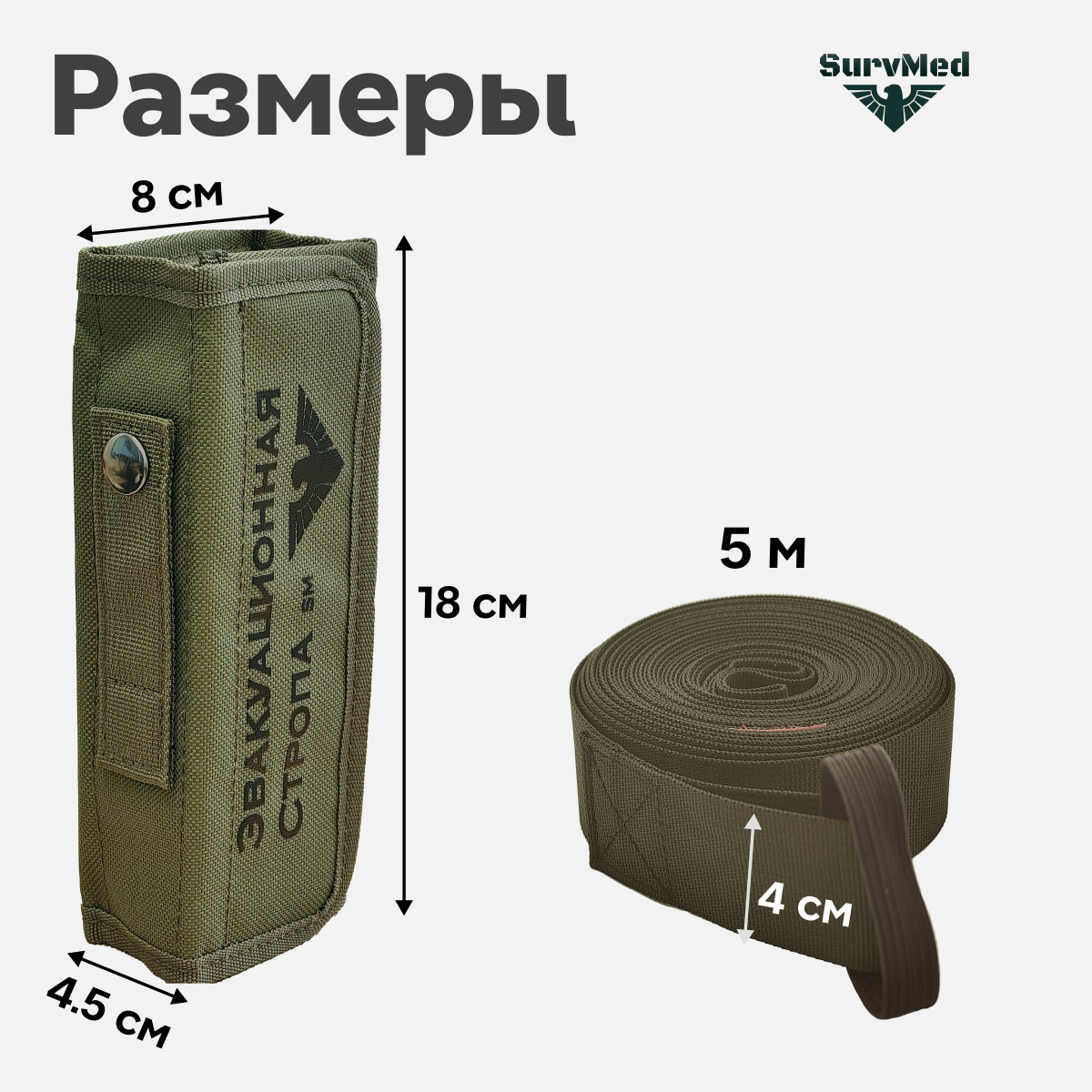 Эвакуационная тактическая стропа, туристическая, базовая, 5 м, олива