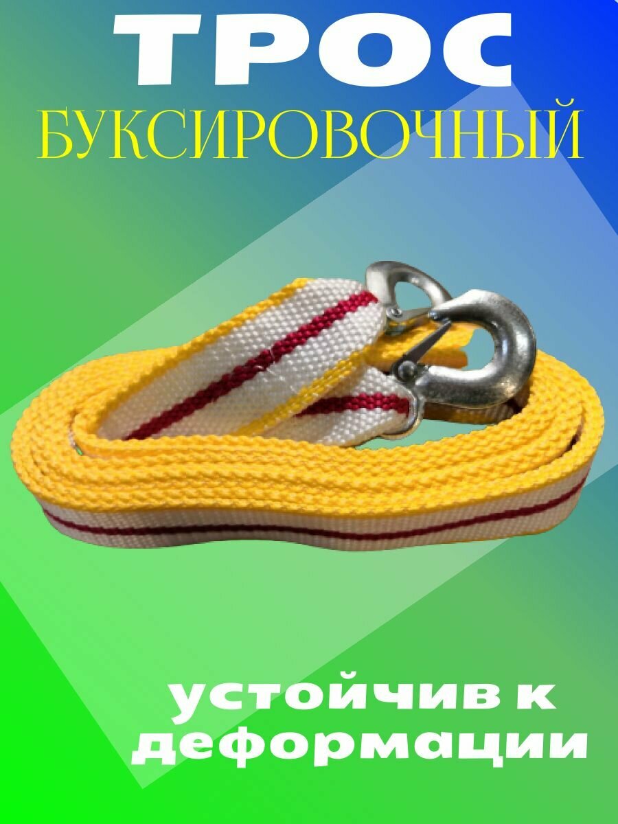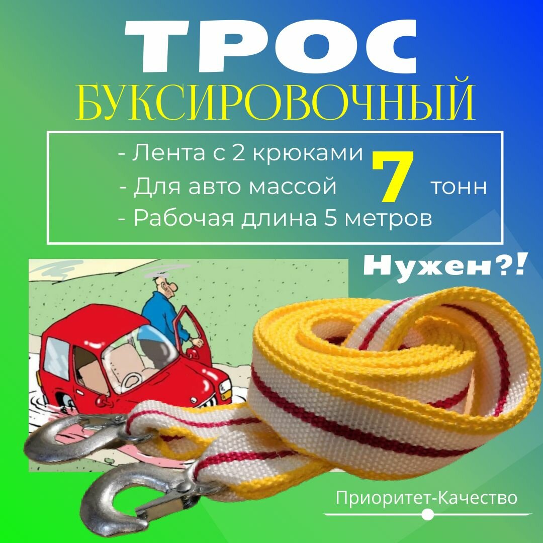 Трос буксировочный для автомобиля 7 т (7 тонн) 5 метров лента с 2 крюками карабинами интересное: