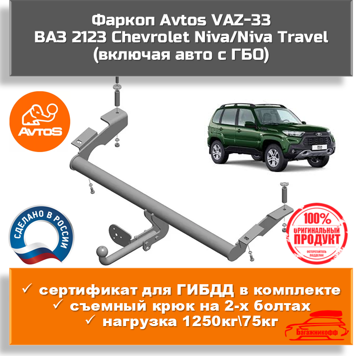 Фаркоп Avtos VAZ-33 для ВАЗ 2123 Chevrolet Niva/Niva Travel (включая авто с ГБО) (паспорт и сертификат в комплекте) интересное: