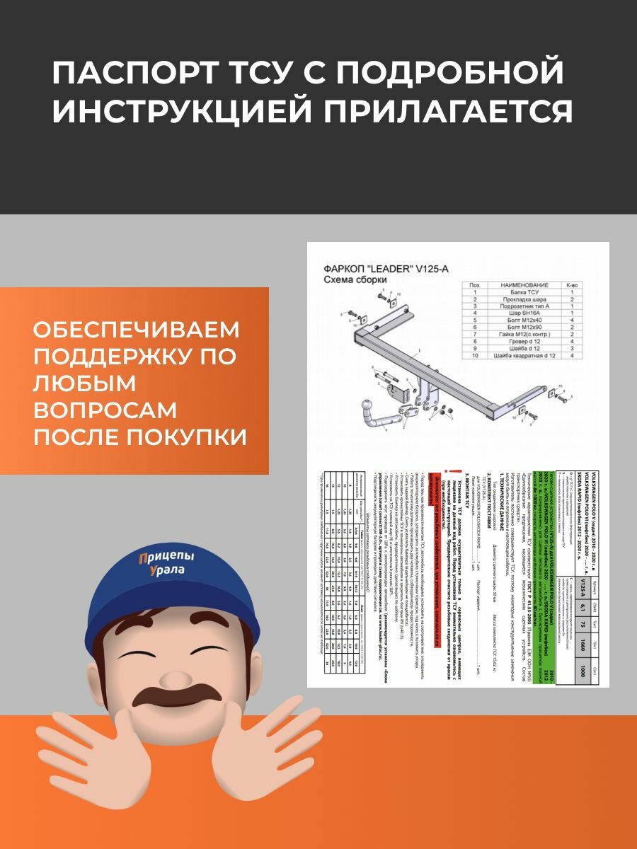 Фаркоп с электрикой Smart Connect для Volkswagen Polo седан/лифтбек (6R1) (2010-), Skoda Rapid лифтбек (2012-) Лидер-Плюс V125-A интересное: