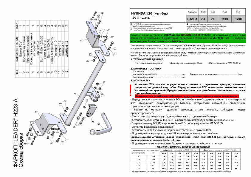Фаркоп с электрикой Smart Connect для Hyundai i30 (JDH) хетчбэк (2012-2017) Лидер-Плюс H223-A интересное: