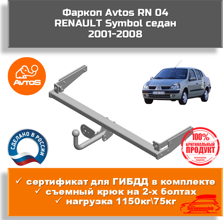 Фаркоп AvtoS RN 04 для RENAULT Symbol 2001-2008 седан (паспорт/сертификат в комплекте) интересное:
