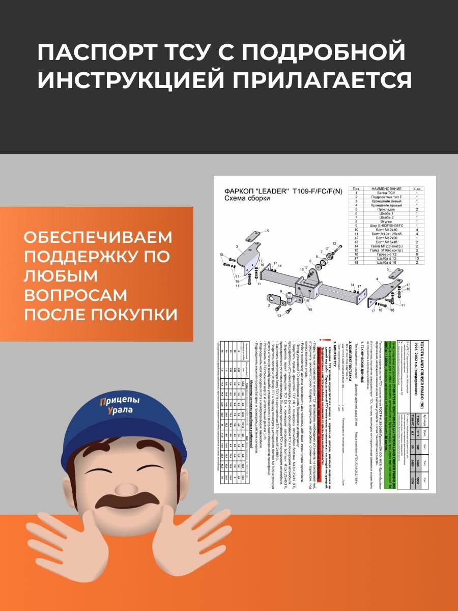 Фаркоп для Toyota Land Cruiser Prado 90 (J9) 5 дверей (1996-2002) Лидер-Плюс T109-FC интересное: