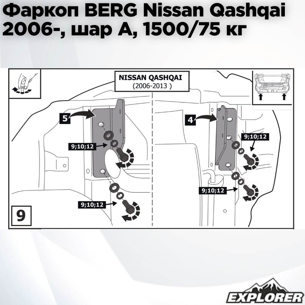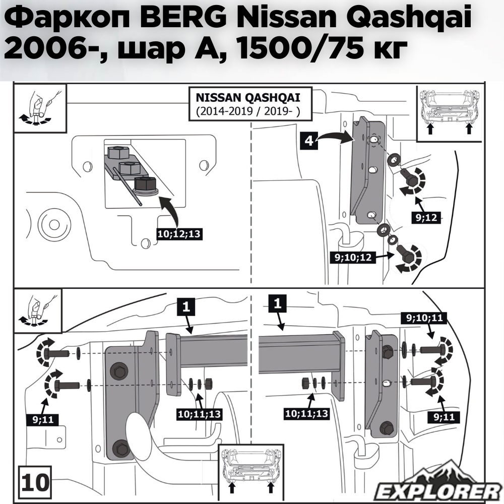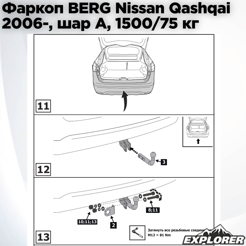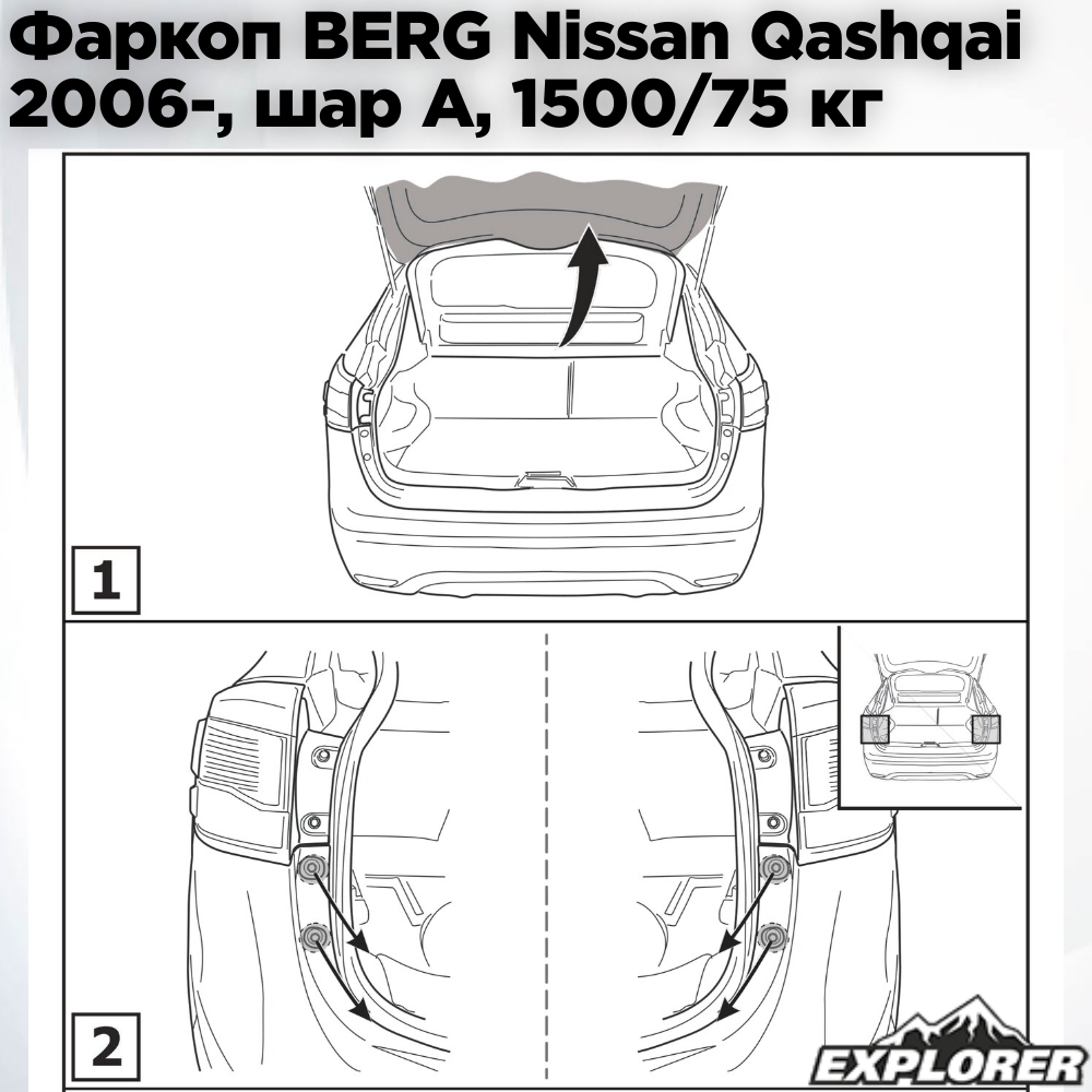 Фаркоп BERG Nissan Qashqai (2006-2013; 2014-2019; 2019-), шар А,1500/75 кг интересное: