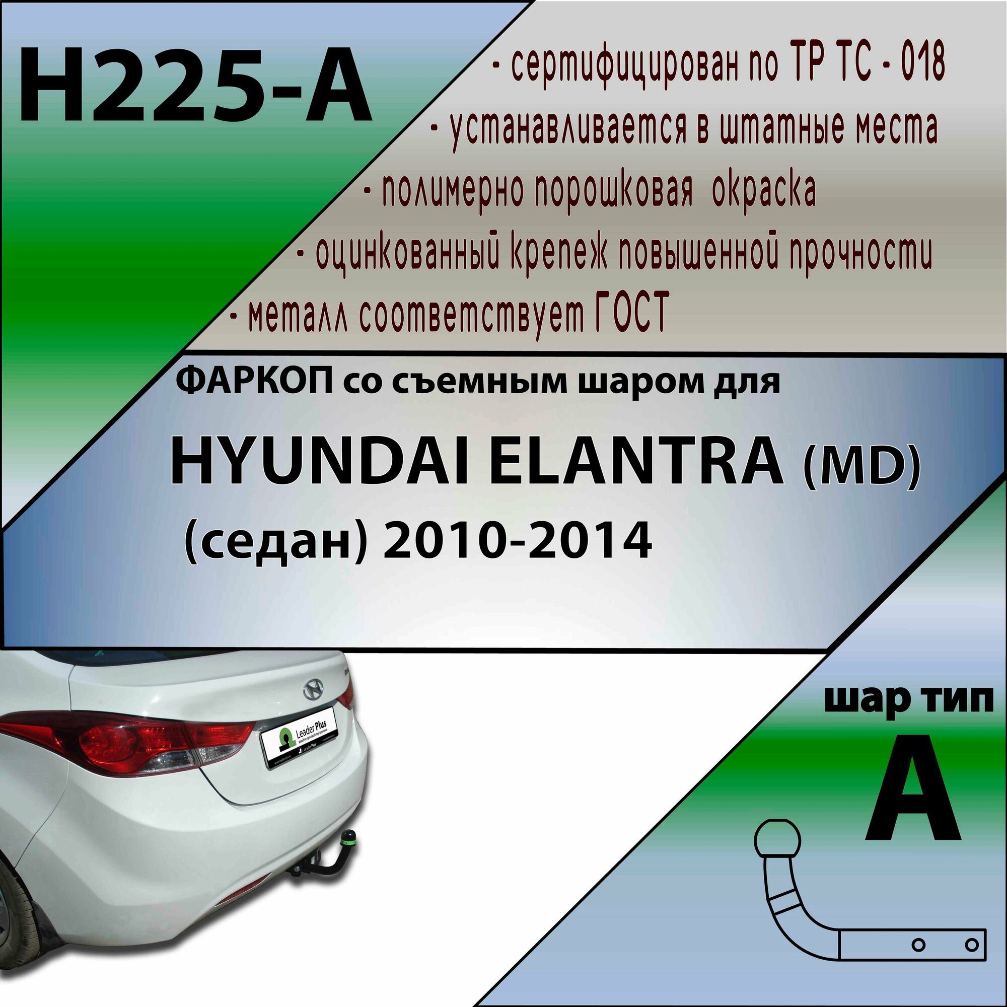Фаркоп H225-A Лидер плюс для HYUNDAI ELANTRA (MD) (седан) 2010-2014 (без электрики) интересное: