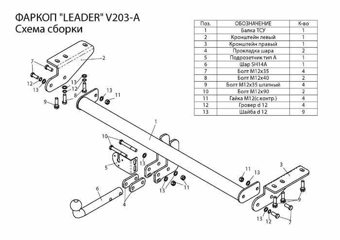 Фаркоп С Шаром Типа A Kia Cerato (Sedan) 2004-2008 ORIS арт. 6732-A
