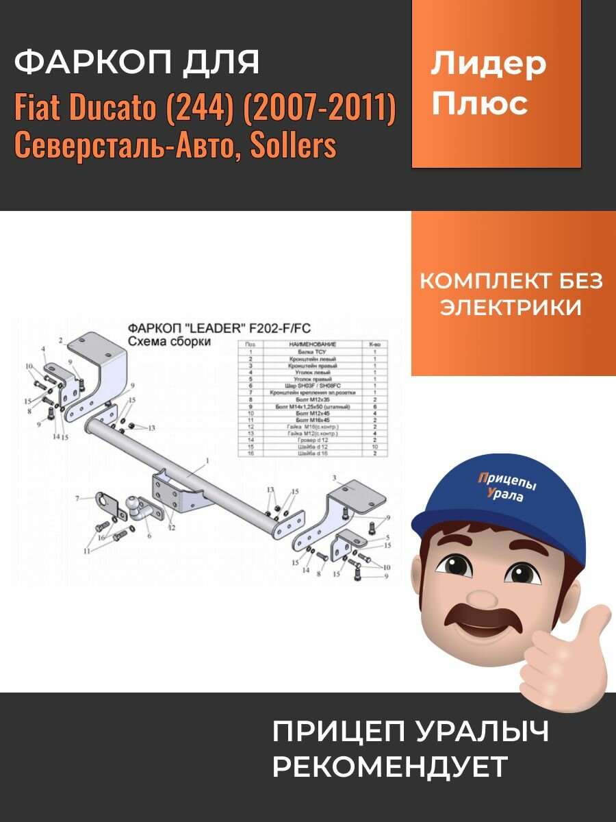 Фаркоп для Fiat Ducato (244) (Северсталь-Авто, Sollers) (2007-2011) Лидер-Плюс F202-F интересное: