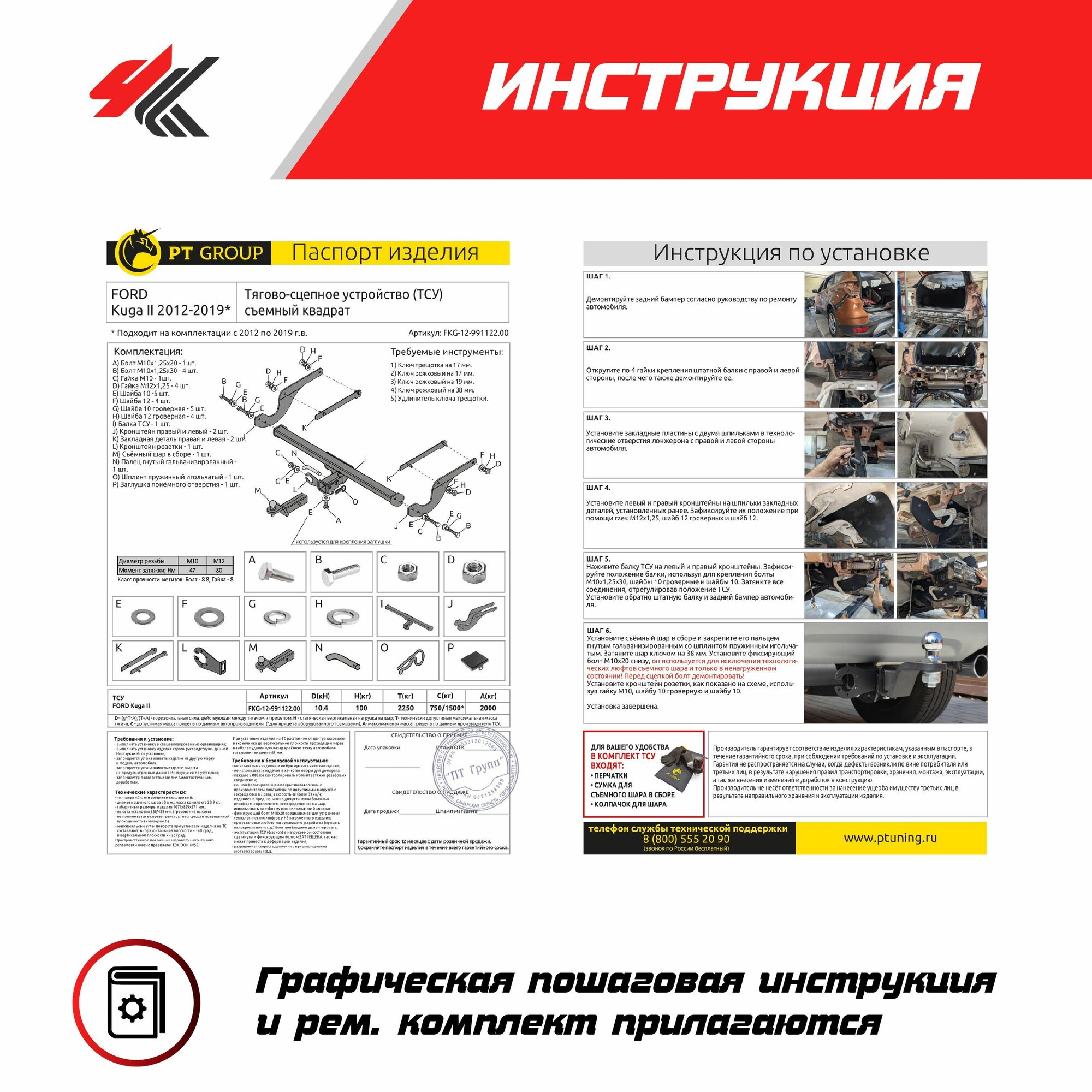 Фаркоп форд КУГА-2 (2012-2019) "PT-Group" + блок согласования "Энви" интересное: