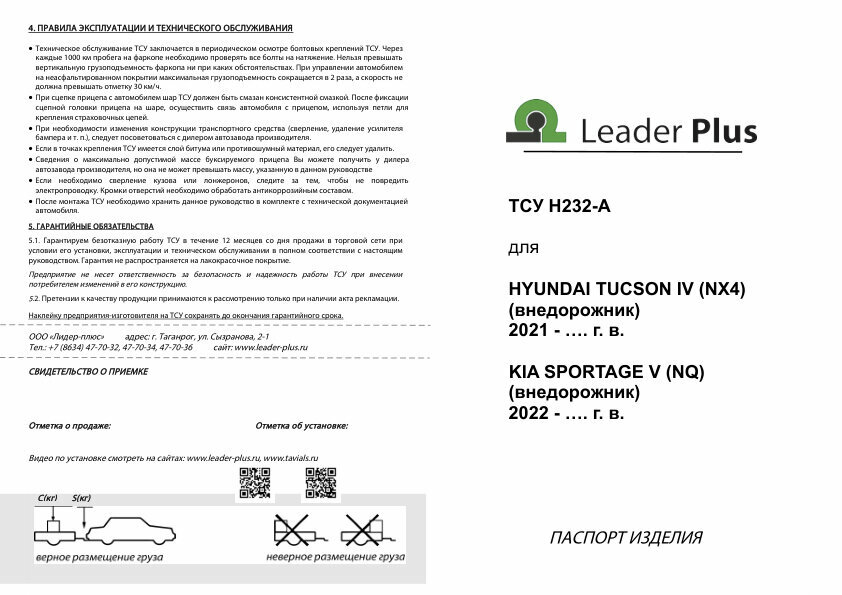 Фаркоп для Hyundai Tucson IV (2021-), Kia Sportage (2022-) Лидер-Плюс H232-A интересное: