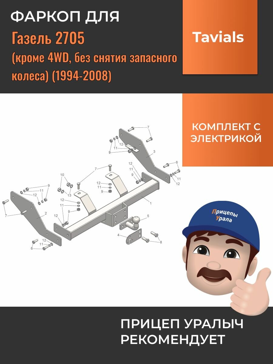 Фаркоп с электрикой для Газель 2705, кроме 4WD без снятия запасного колеса (1994-2008) TAVIALS T-GAZ-01F интересное: