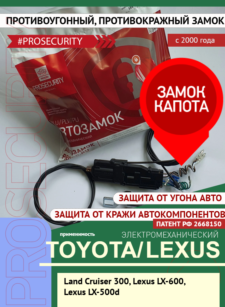 Замок капота противоугонный для Toyota Land Cruiser 300 Тойота , Lexus Лексус LX-600 500d электромеханика PROSECURITY интересное: