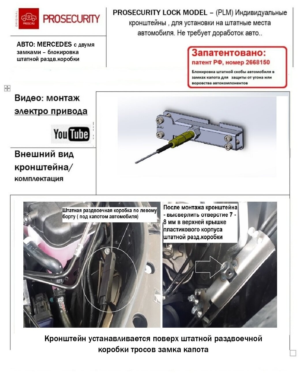 Механический замок капота для Mercedes GL, GLС, GLE, ML (2015-) PROSECURITY интересное:
