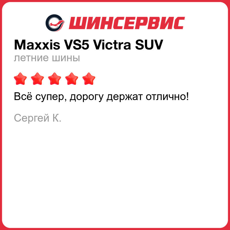 Ниже Вы можете прочитать отзывы на Летняя шина Maxxis VS5 Victra SUV 255/55 R20 110Y, ознакомится с подробными характеристиками, посмотреть интересные обзоры и фотографии на Летняя шина Maxxis VS5 Victra SUV 255/55 R20 110Y.