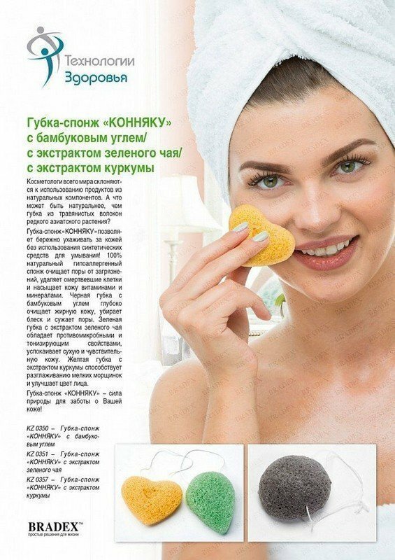 Губка-спонж «конняку» с экстрактом куркумы KZ 0357 BRADEX интересное: