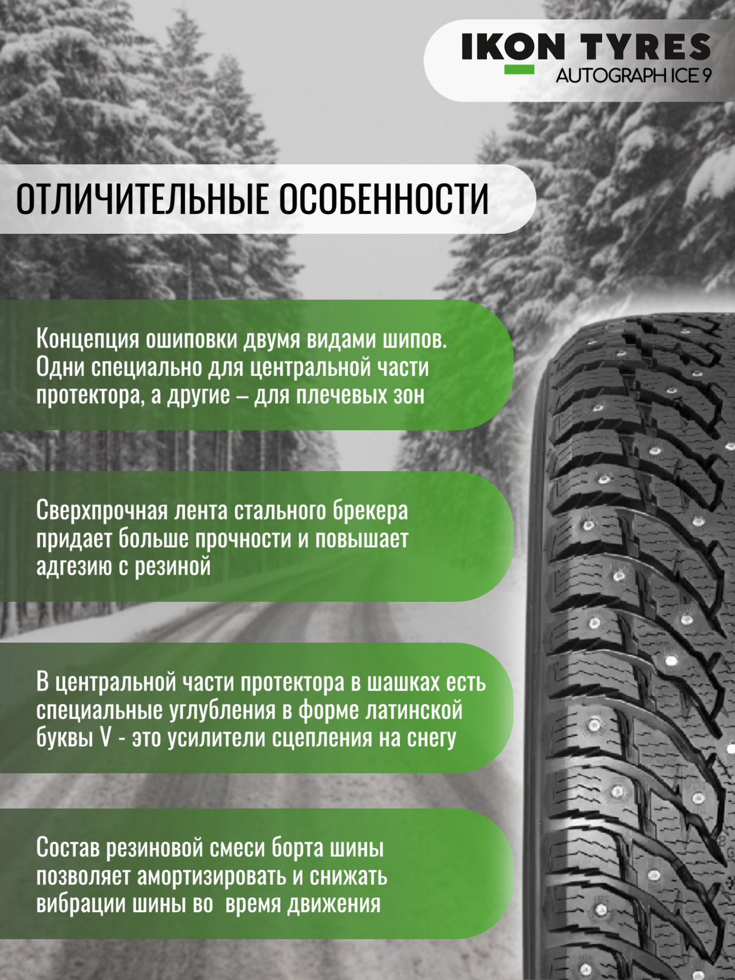 Шина Ikon Tyres(Айкон Тайерес) Autograph Ice 9 SUV 295/40 R21 111T зимняя автомобильная шипованная