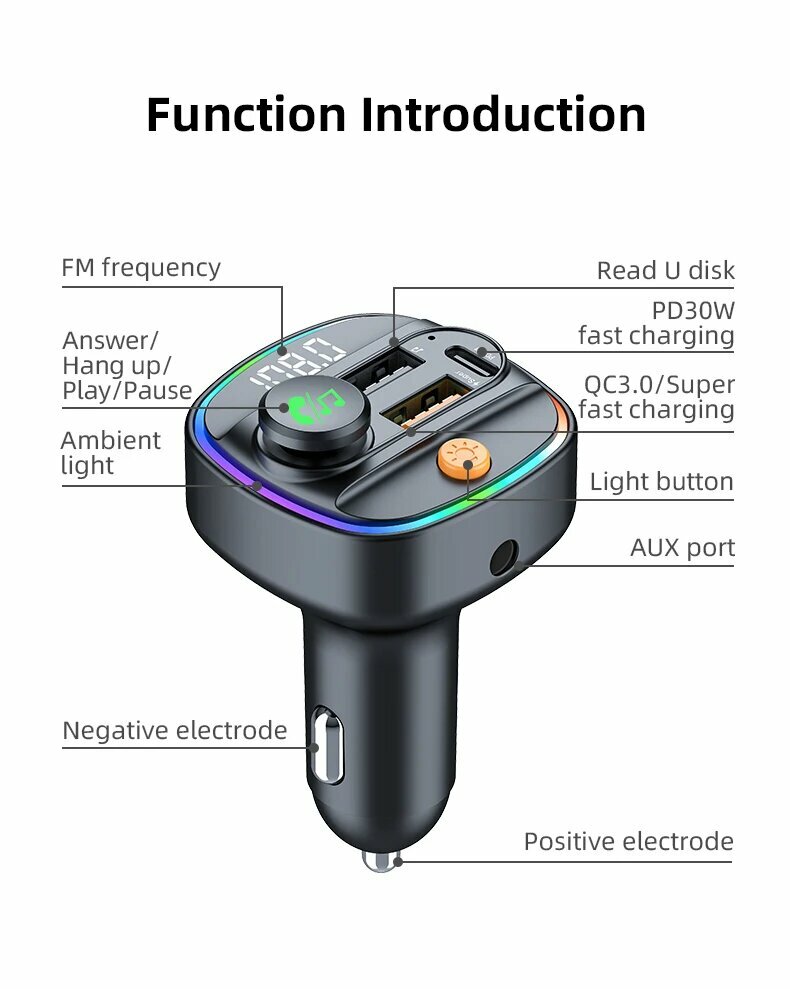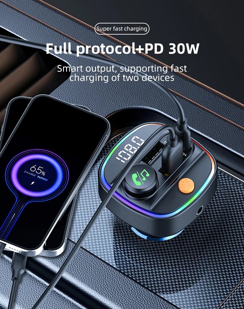 Bluetooth 5,3 FM-передатчик Handsfree Автомобильный AUX-радиомодулятор MP3-плеер с адаптером быстрой зарядки 22,5 Вт и PD30W Автомобильные аксессуары, C4-Black интересное:
