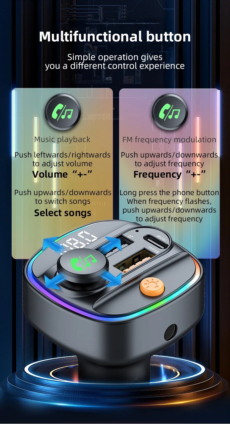 Купить Bluetooth 5,3 FM-передатчик Handsfree Автомобильный AUX-радиомодулятор MP3-плеер с адаптером быстрой зарядки 22,5 Вт и PD30W Автомобильные аксессуары, C4-Black