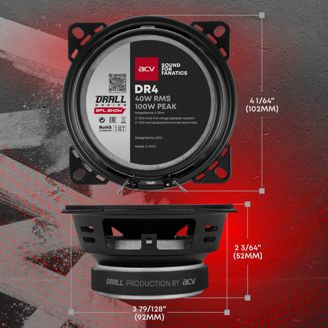 Колонки для автомобиля ACV DR4 DRALL / широкополосная акустика 10 см. (4 дюймов) / 100W интересное: