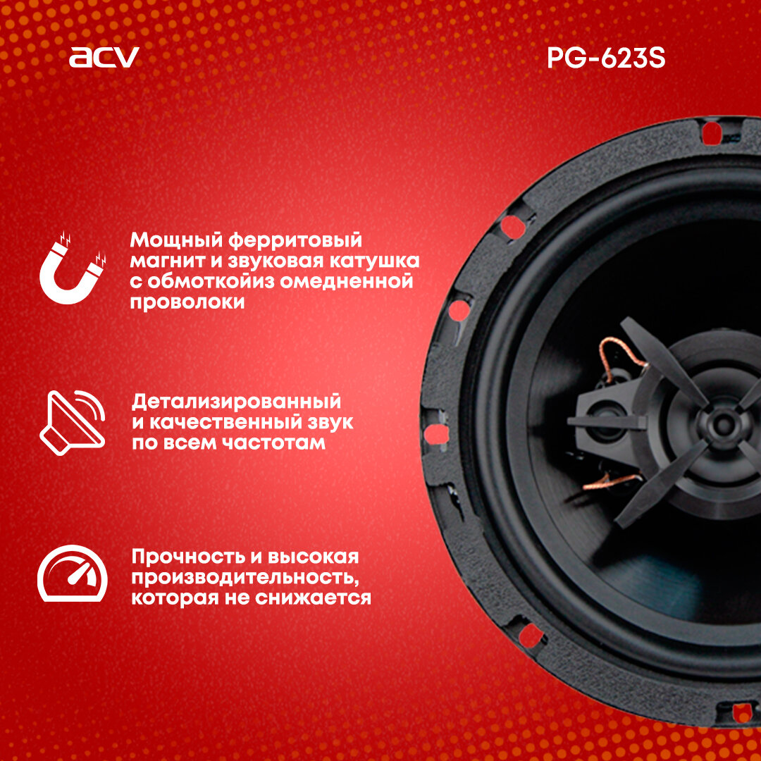 Динамики автомобильные трехполосные коаксиальные, 2 шт, (180 Вт, 16 см) - ACV PG-623S интересное: