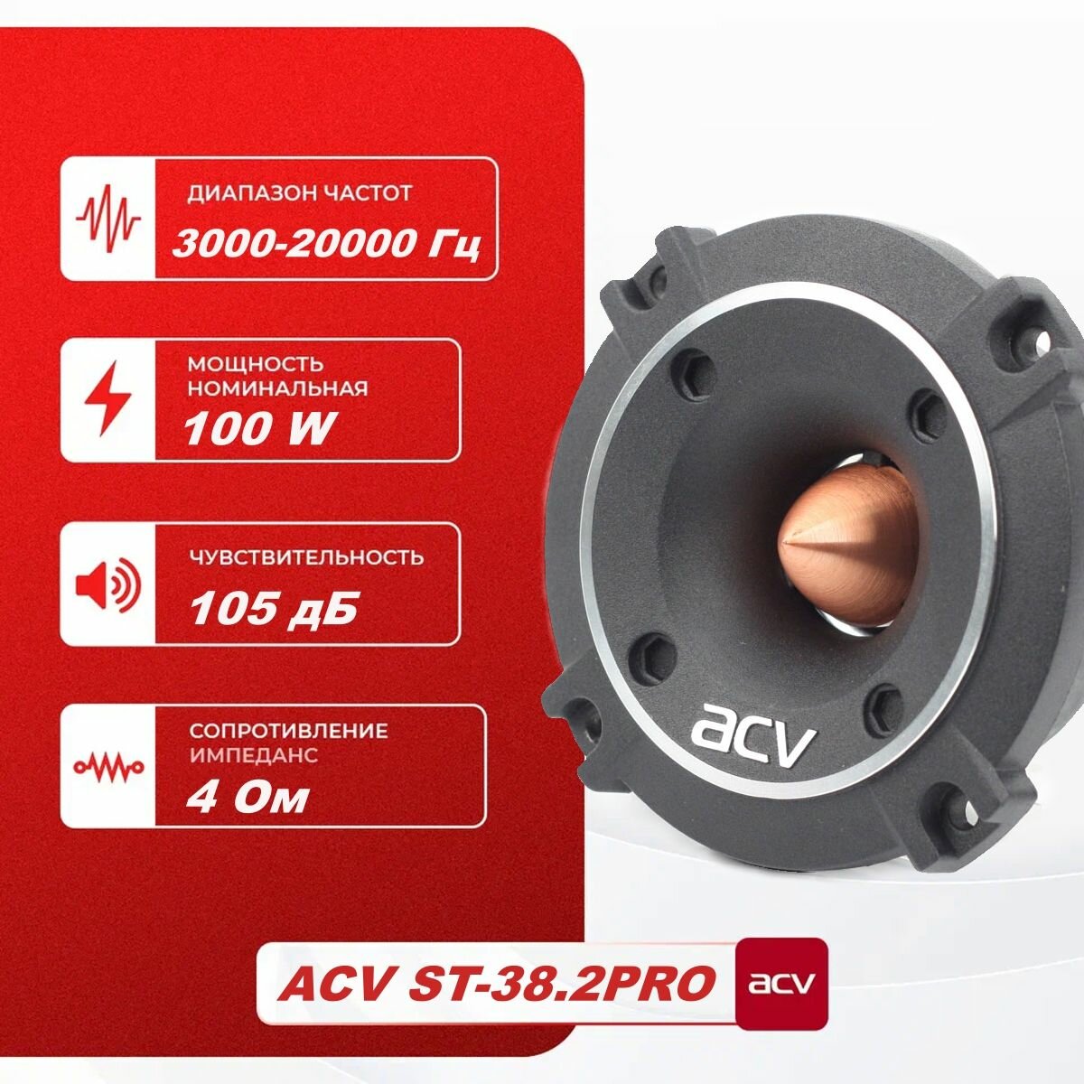 ВЧ динамик ACV ST-38.2 PRO SPL SHOW / Рупорный ВЧ динамик 10 см. (4 дюймa) / комплект 2 шт. интересное: