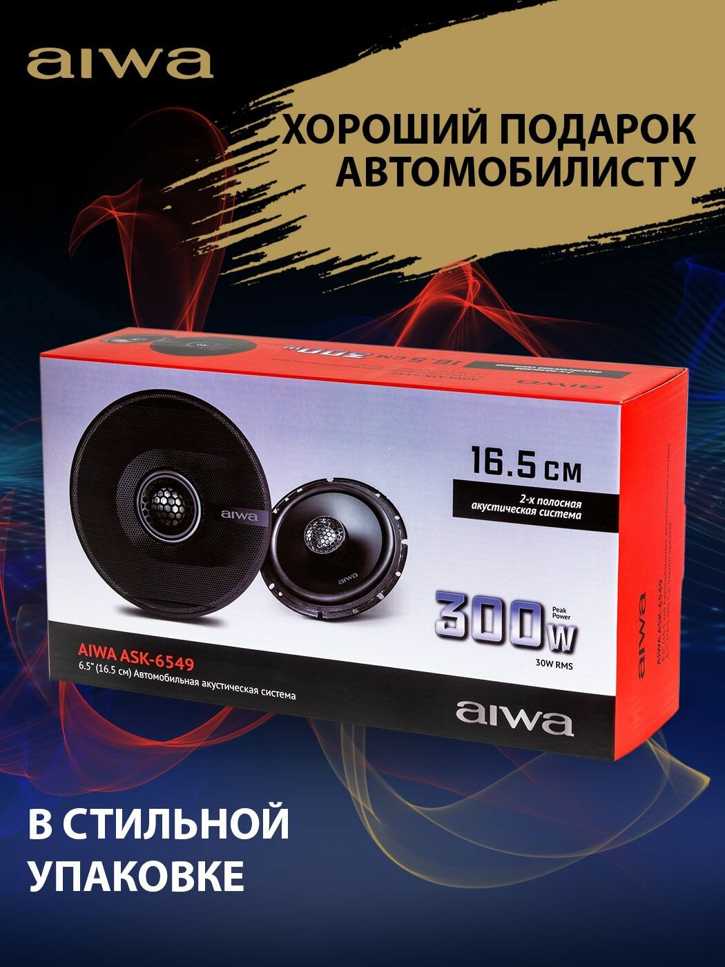 Акустическая система для авто (2 динамика) AIWA ASK-6549, 6.5 дюймов (16.5 см), диапазон частот 68Гц - 22кГц, 300 Вт интересное: