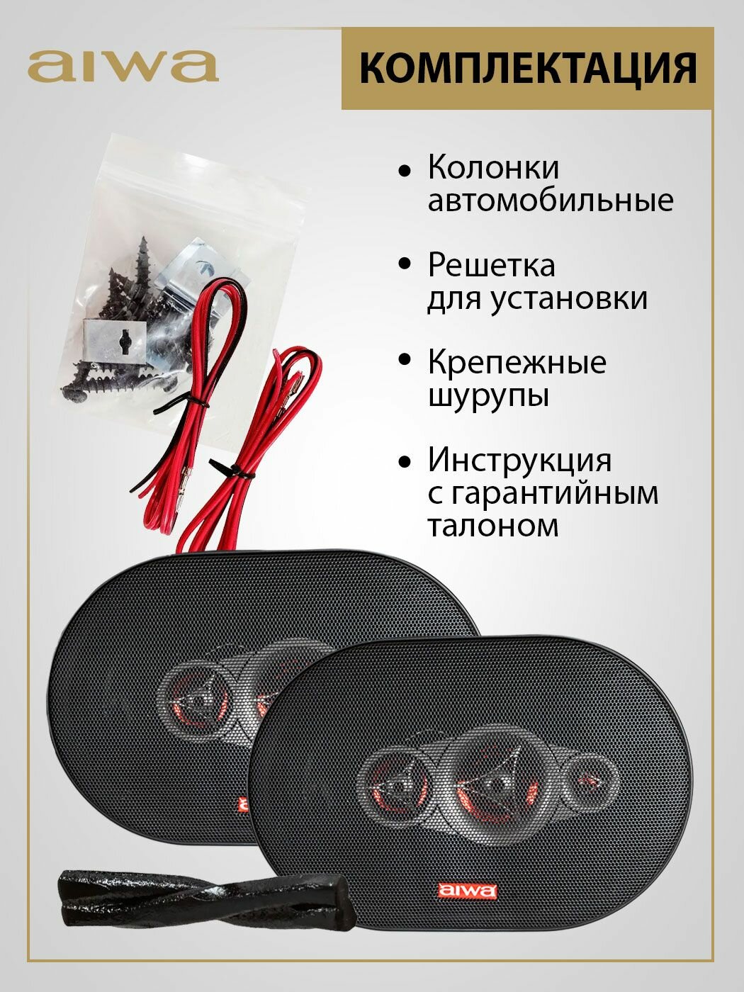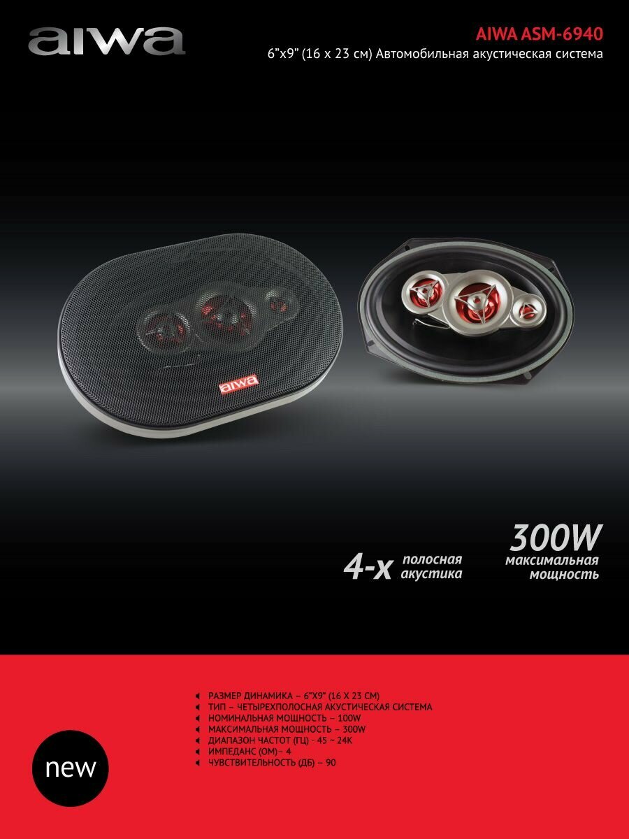 Автомобильная акустическая система AIWA четырехполосная, 6x9 дюймов (16x23 см), диапазон частот 45Гц - 24кГц, 300 Вт интересное: