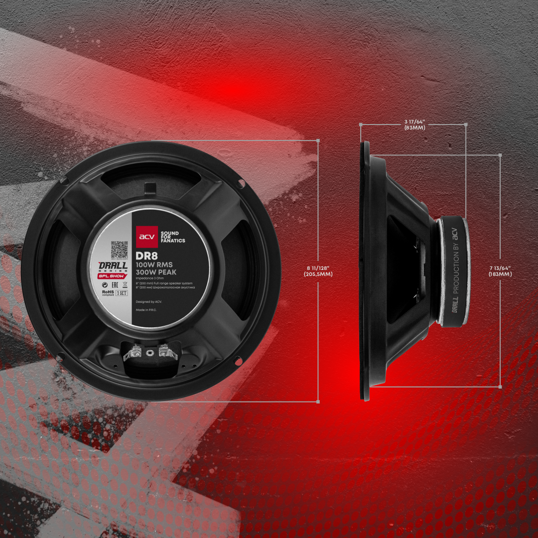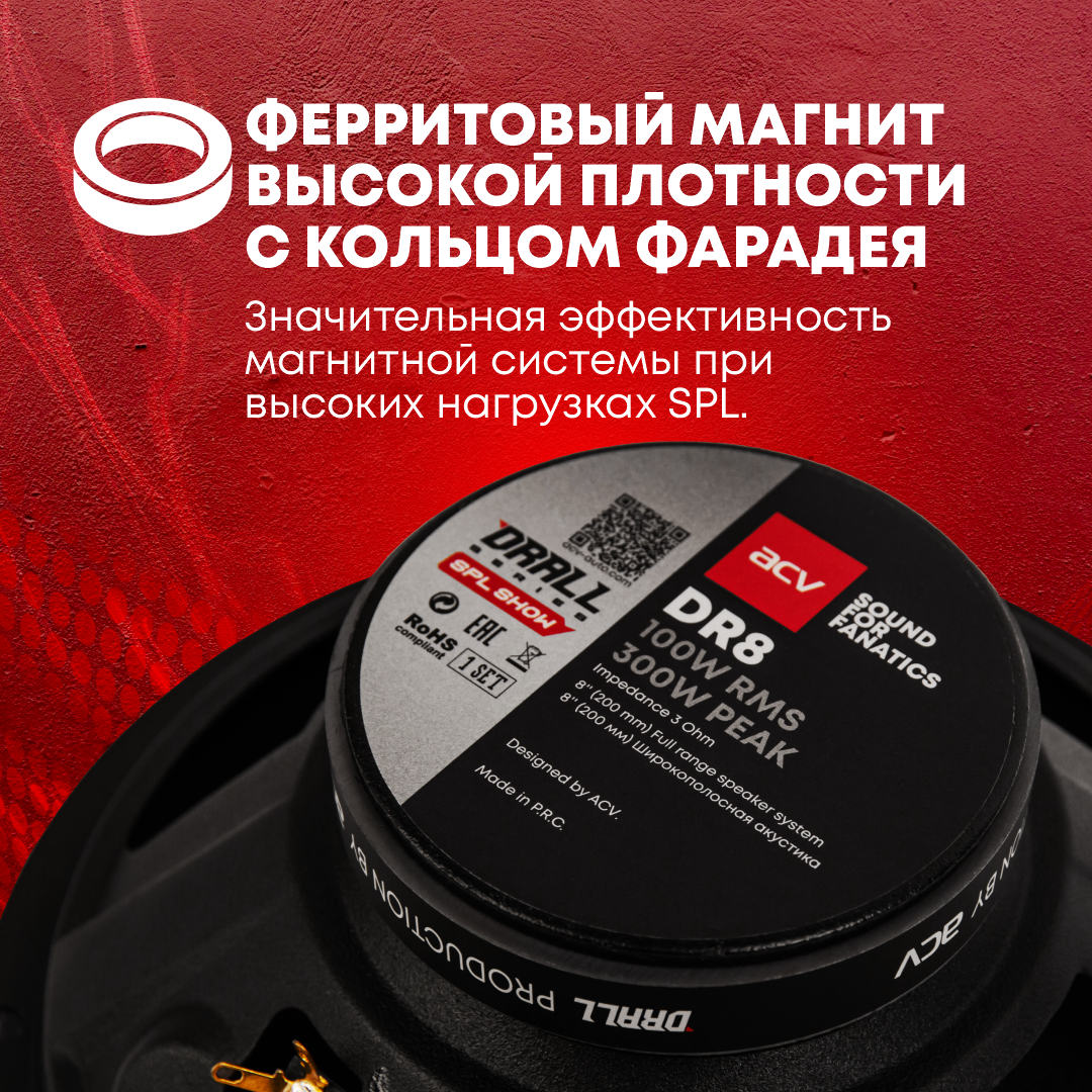 Колонки автомобильные ACV DRALL DR8 (без решетки) 300Вт 96дБ 3Ом 20см (8дюйм) (ком:2кол.) широкополосные однополосные интересное: