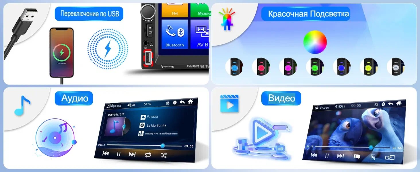 Автомобильная магнитола 2din GRS-883DP5, 7", Bluetooth, сенсорный дисплей, поддержка карт памяти интересное: