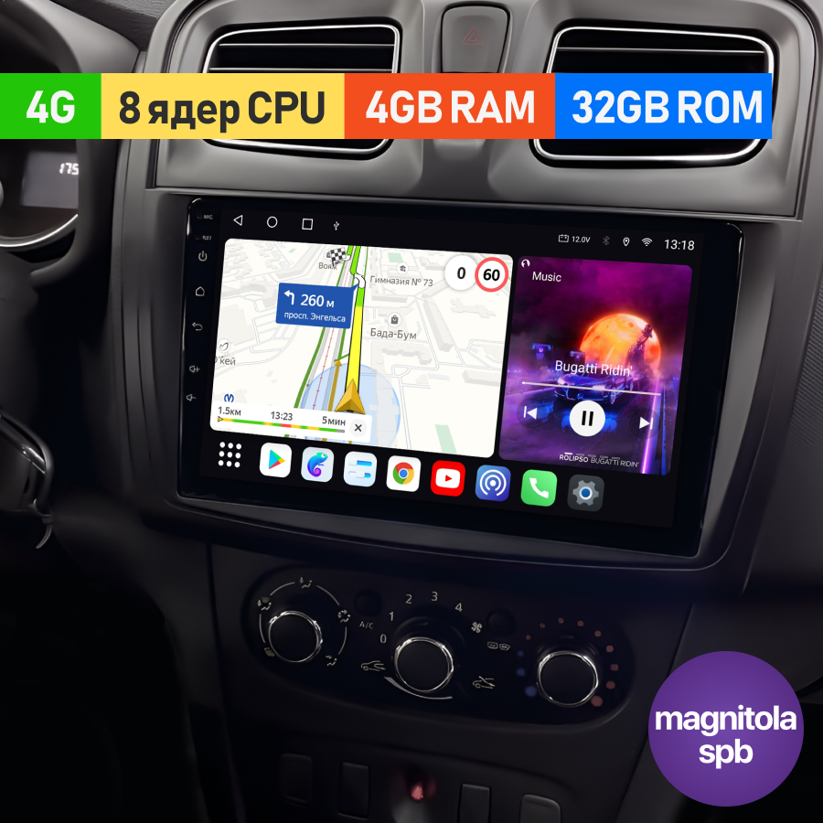 Магнитола Renault Logan, Sandero 2012 - 2022 4G 8 ядер 4Gb+32Gb интересное: