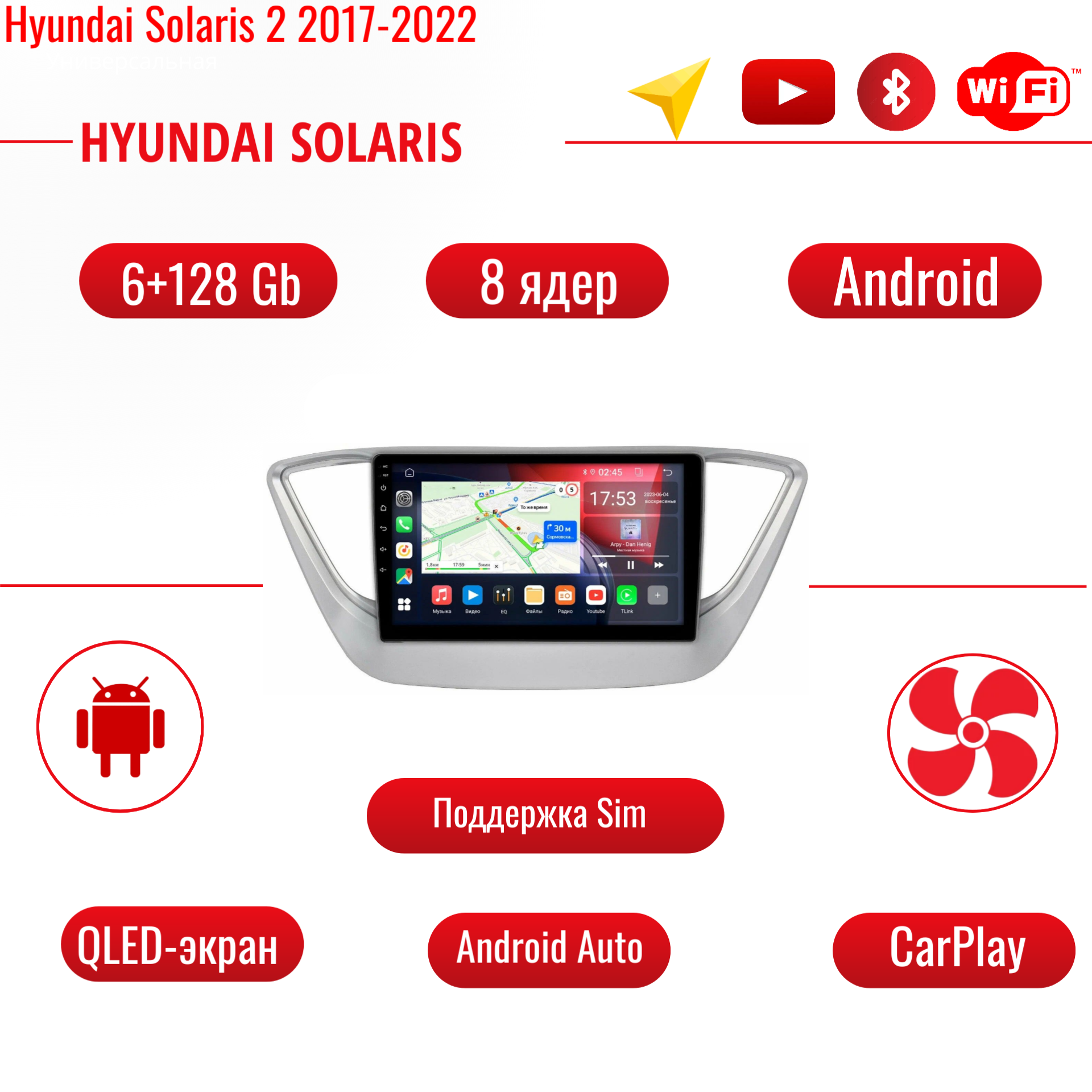 Штатная магнитола Hyundai Solaris 2 2017-2020 / 6+128 8 ядер /SIM Android /GPS, Bluetooth/2DIN+рамка и камера в подарок интересное: