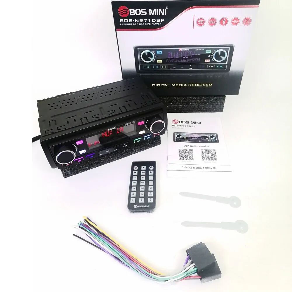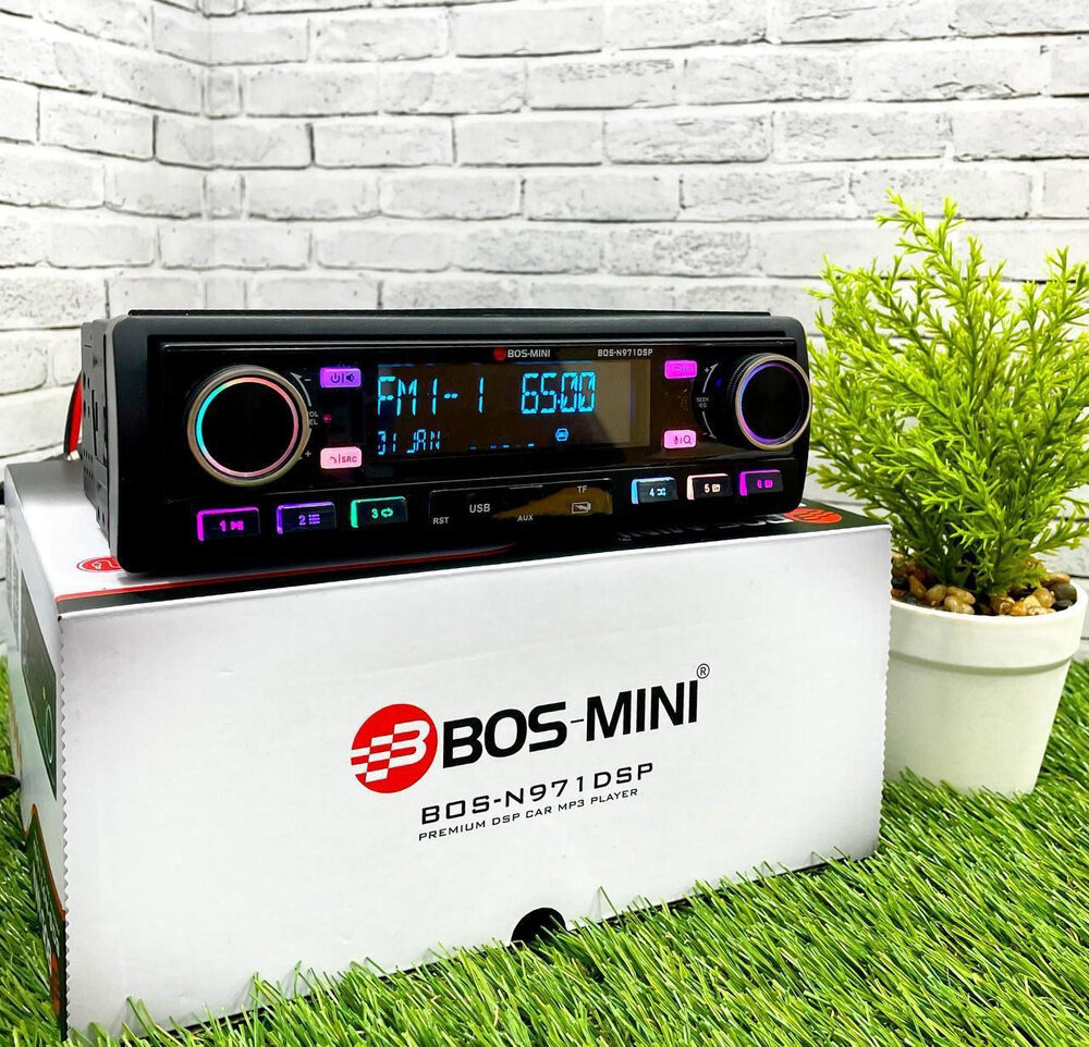 Купить Автомагнитола Bos-Mini-N971DSP 1DIN, Bluetooth, Aux, USB и Type-C , проц DSP , RGB экран ,9 выходов RCA, съемная панель
