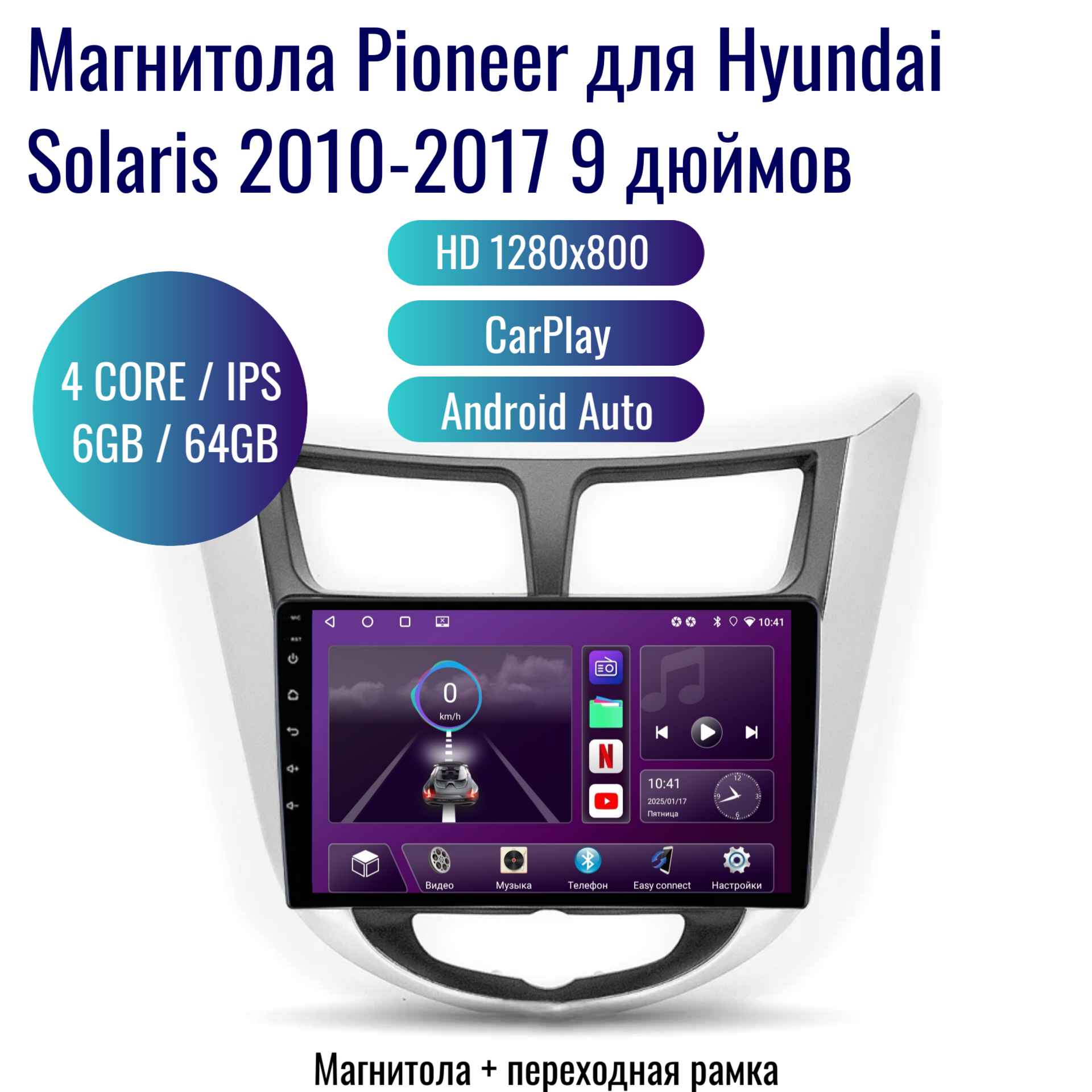 Купить Автомагнитола Pioneer Android Hyundai Solaris 2010-2017 / 4 ядер 6Gb+64Gb / 9 дюймов / GPS / Bluetooth / Wi-Fi / 2din