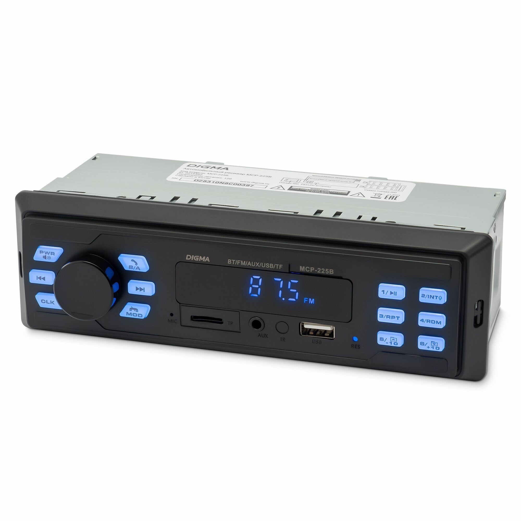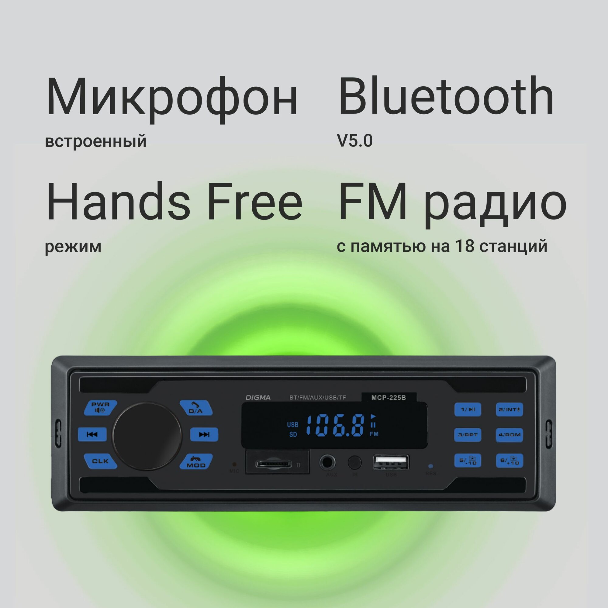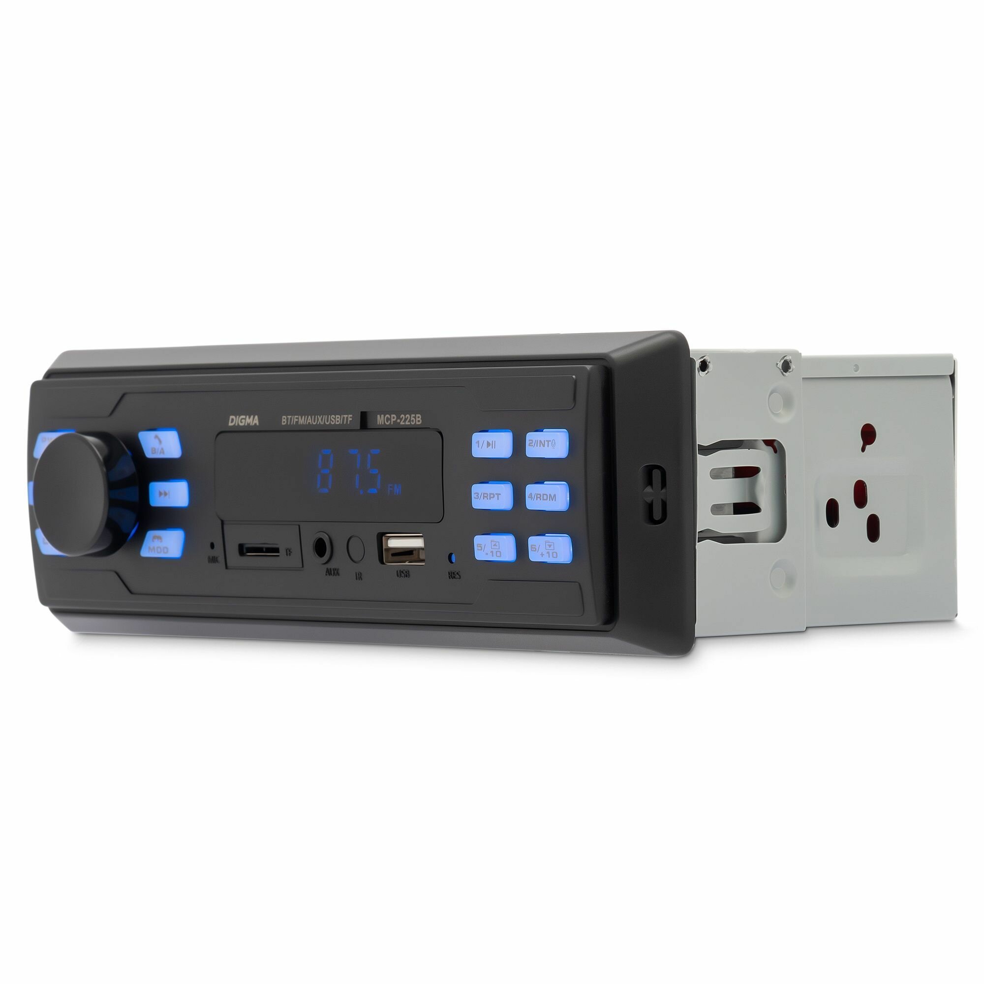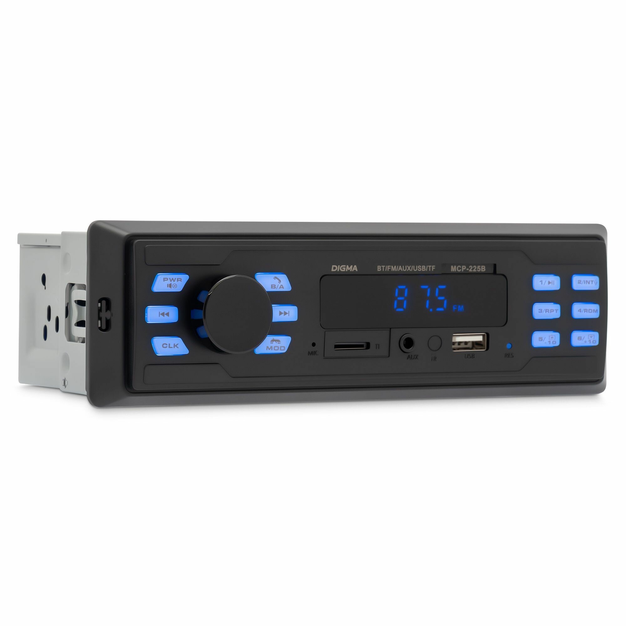 Магнитола для авто с блютуз Digma MCP-225B Bluetooth, 1Din, USB, AUX, синяя подсветка интересное:
