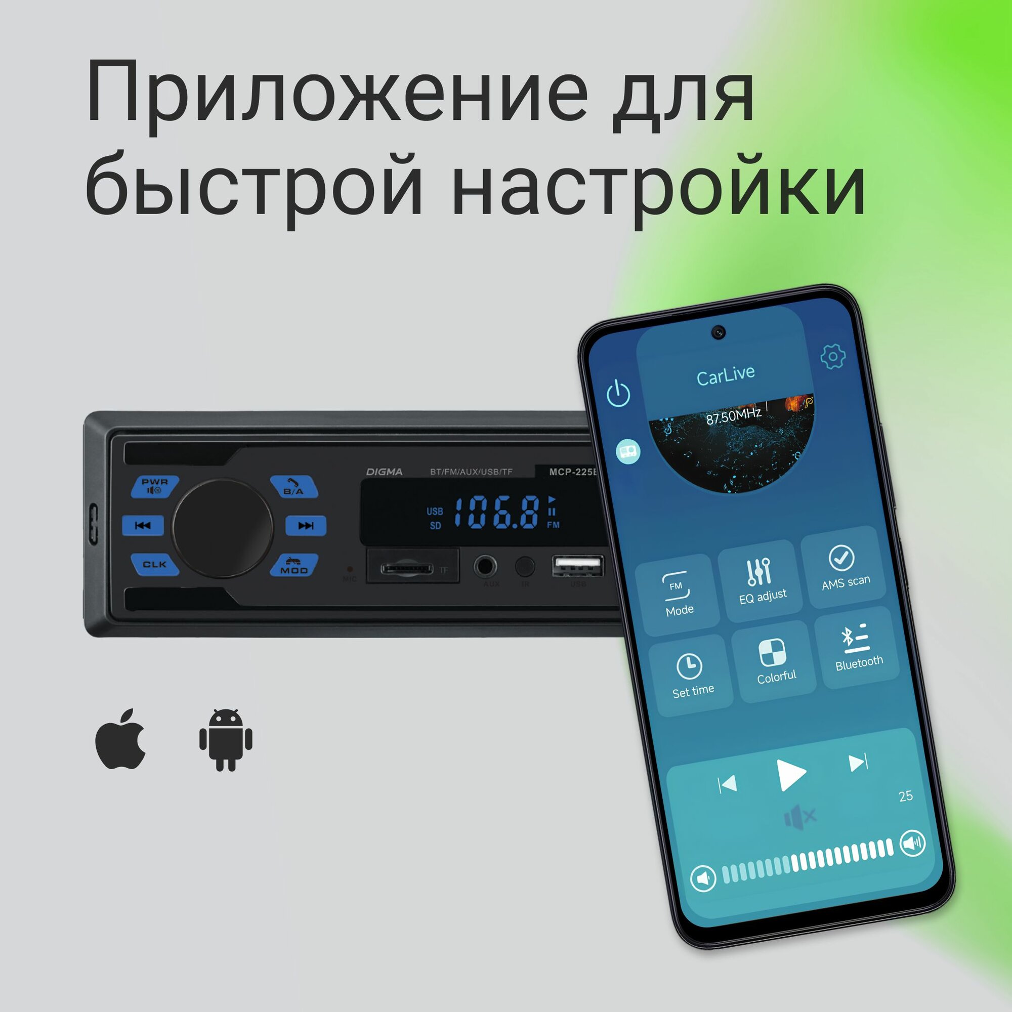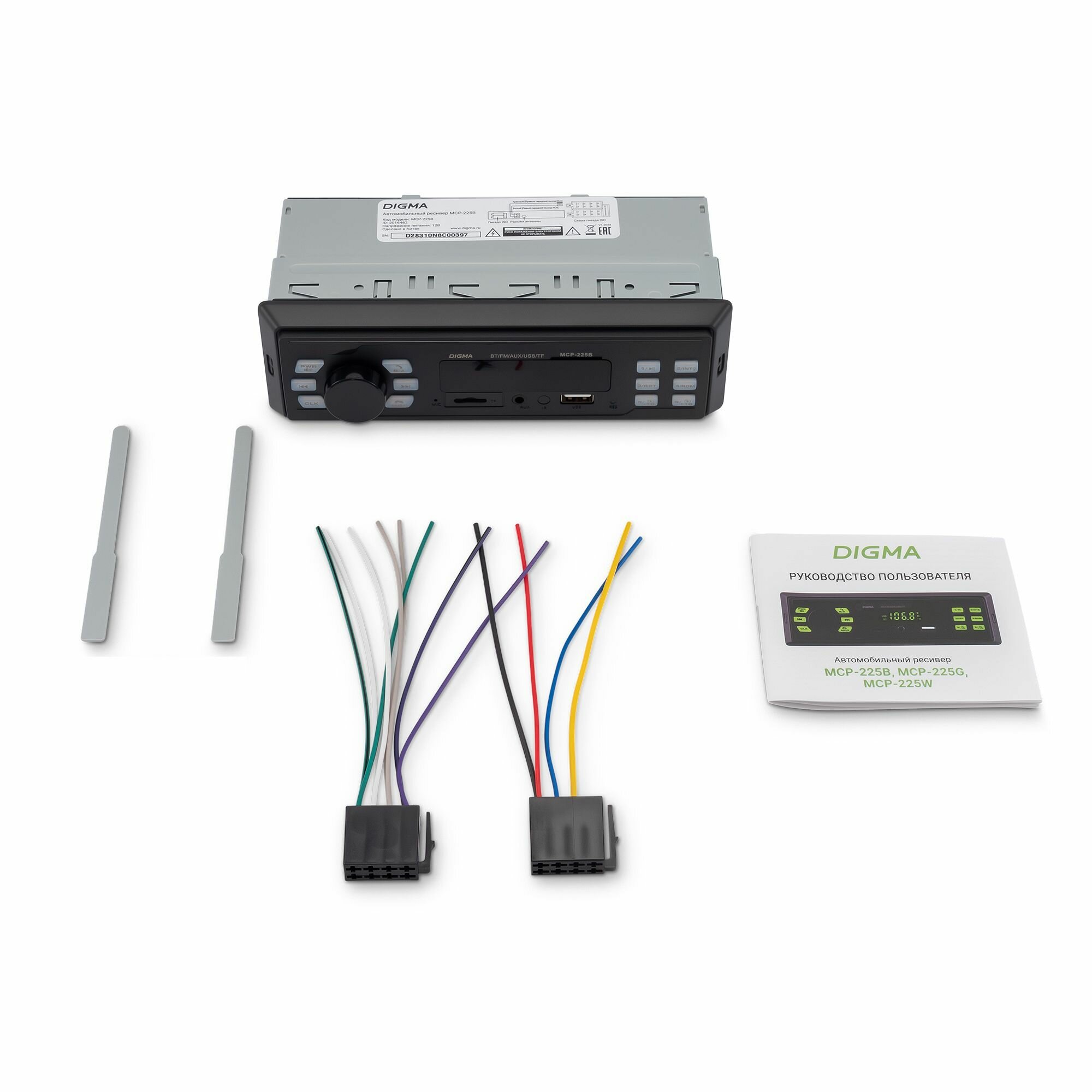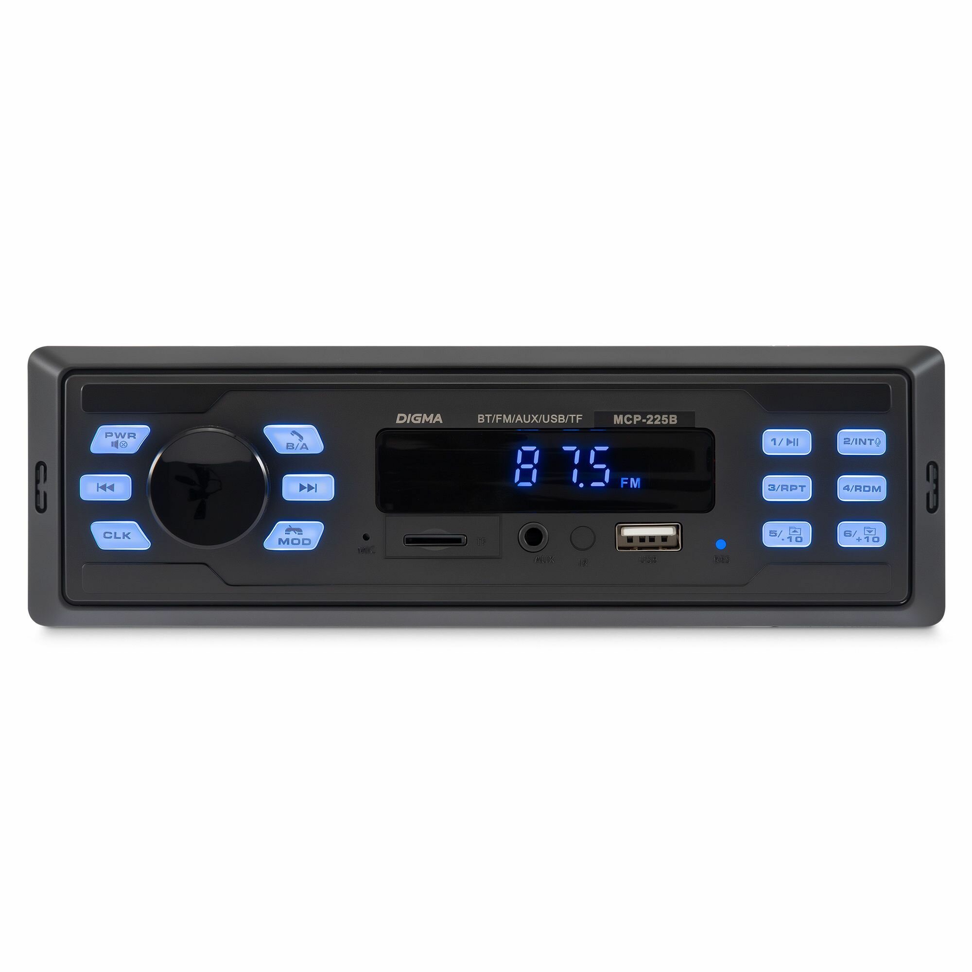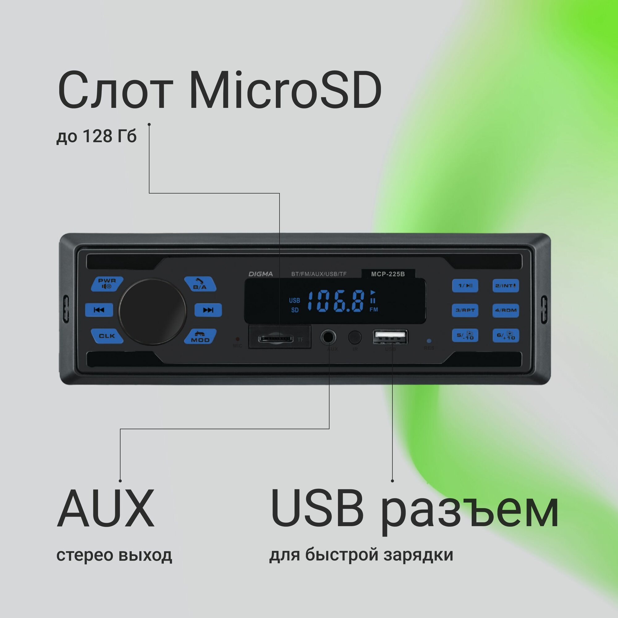Магнитола для авто с блютуз Digma MCP-225B Bluetooth, 1Din, USB, AUX, синяя подсветка интересное: