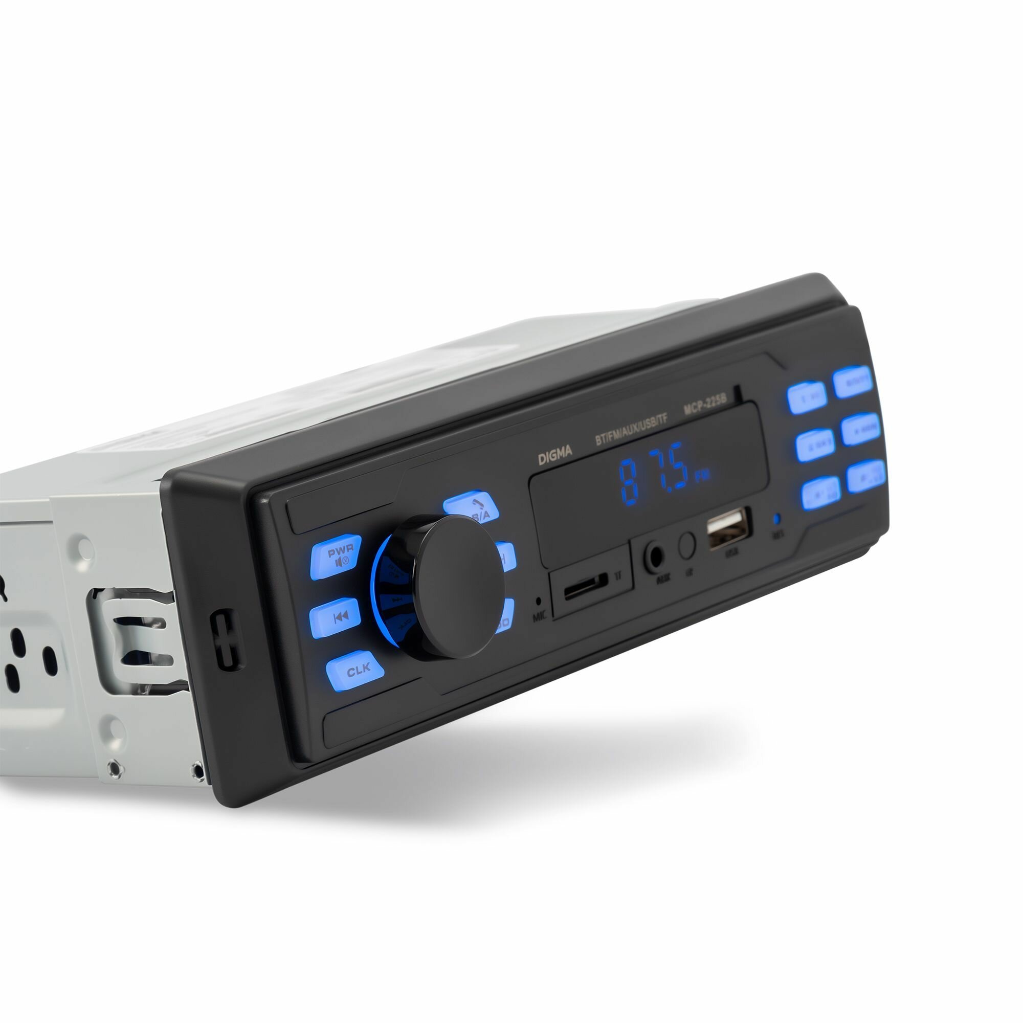 Купить Магнитола для авто с блютуз Digma MCP-225B Bluetooth, 1Din, USB, AUX, синяя подсветка