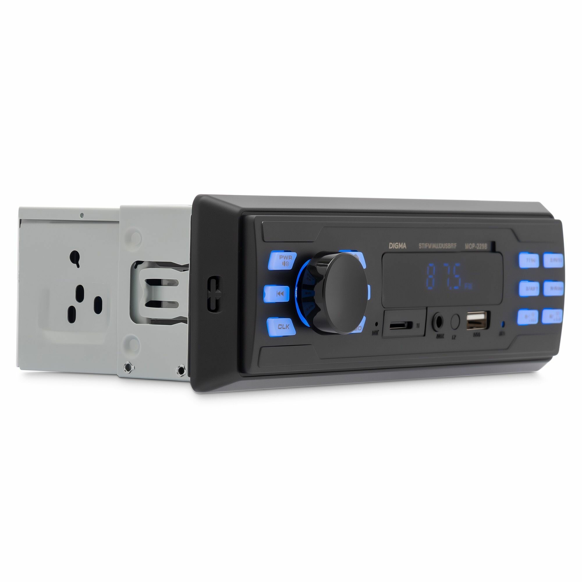 Ниже Вы можете прочитать отзывы на Магнитола для авто с блютуз Digma MCP-225B Bluetooth, 1Din, USB, AUX, синяя подсветка, ознакомится с подробными характеристиками, посмотреть интересные обзоры и фотографии на Магнитола для авто с блютуз Digma MCP-225B Bluetooth, 1Din, USB, AUX, синяя подсветка.