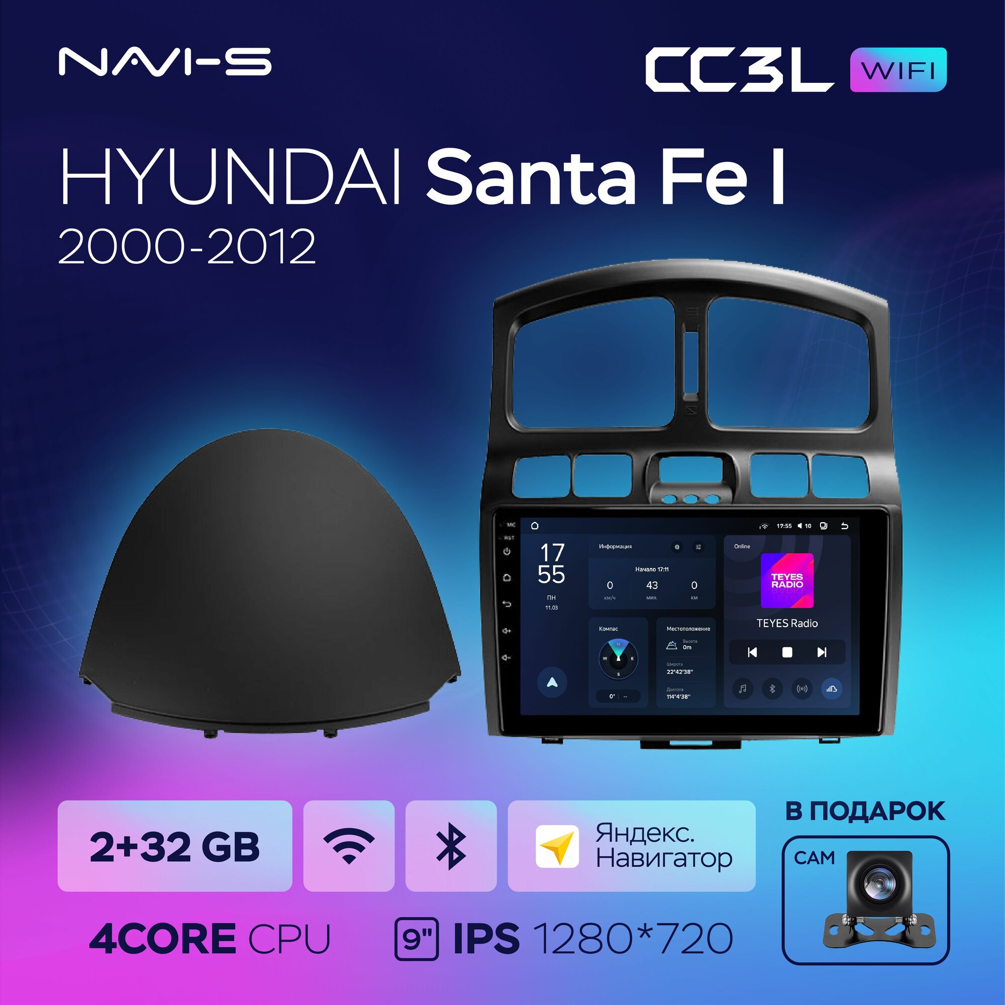 Автомагнитола Teyes CC3L для Hyundai Santa Fe 1 Classic (Хендай Санта Фе 1 Классик) 2000 - 2012