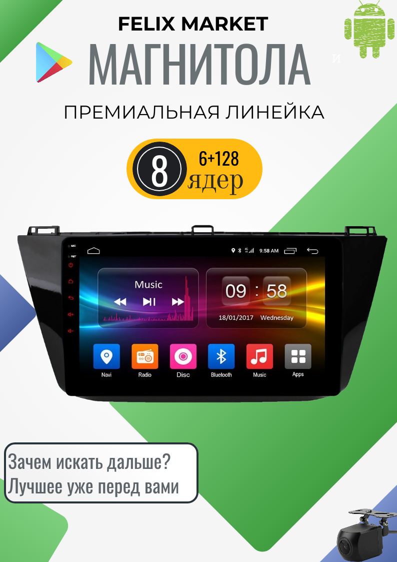 Купить Магнитола процессорная 10 дюймов Volkswagen Tiguan 2017-2022/10 дюймов /6+128/ 8 ядер/Sim + рамка и камера в подарок