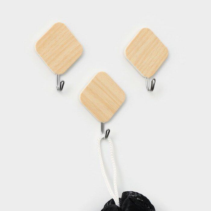 Купить Крючки самоклеящиеся Доляна «Деревянные ромбы», 3 шт, цвет светлое дерево
