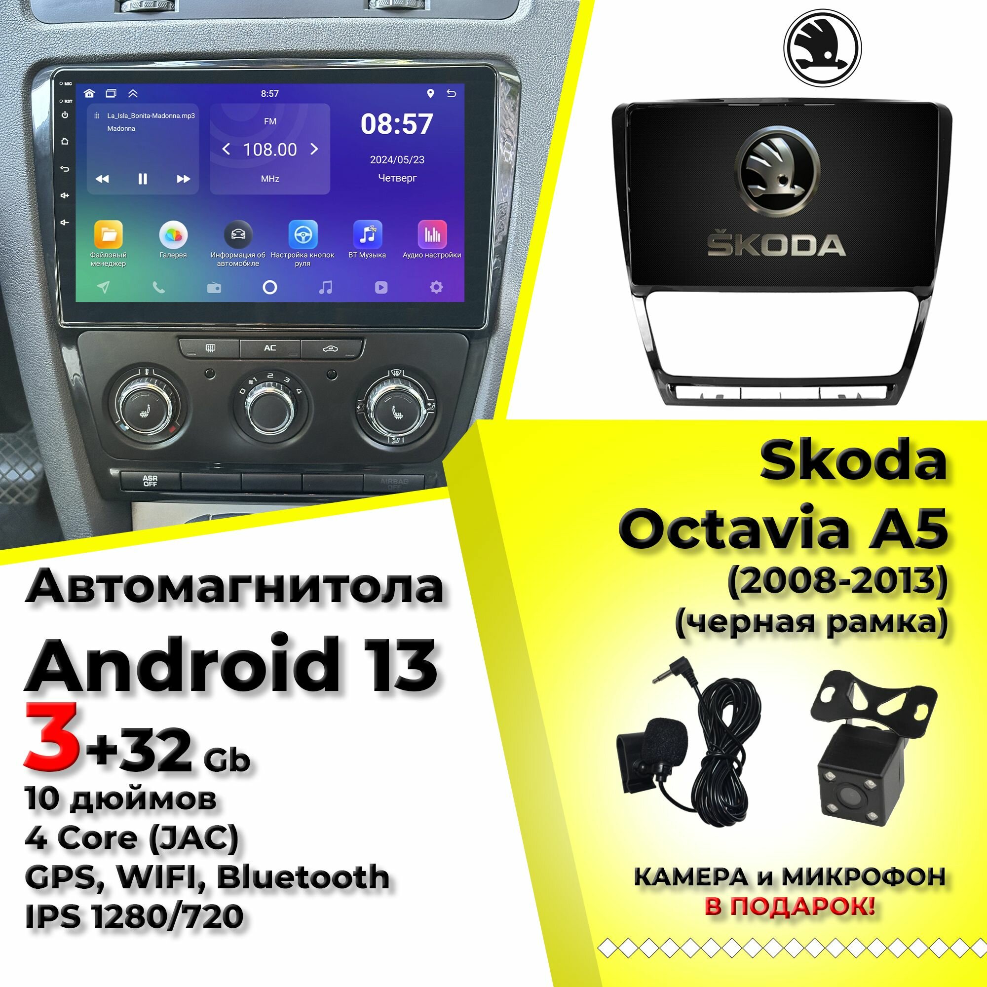 Автомагнитола для Skoda Octavia A5 Шкода Октавия А5 (2008-2013) андроид 10 дюймов 3+32 Gb 4Core IPS (JAC) интересное: