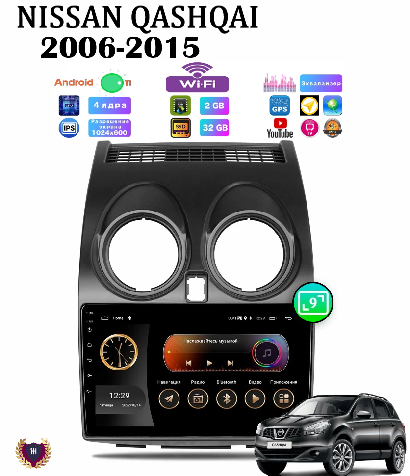 Купить Автомагнитола для Nissan Qashqai (2006-2015), Android 11, 2/32 Gb, Wi-Fi