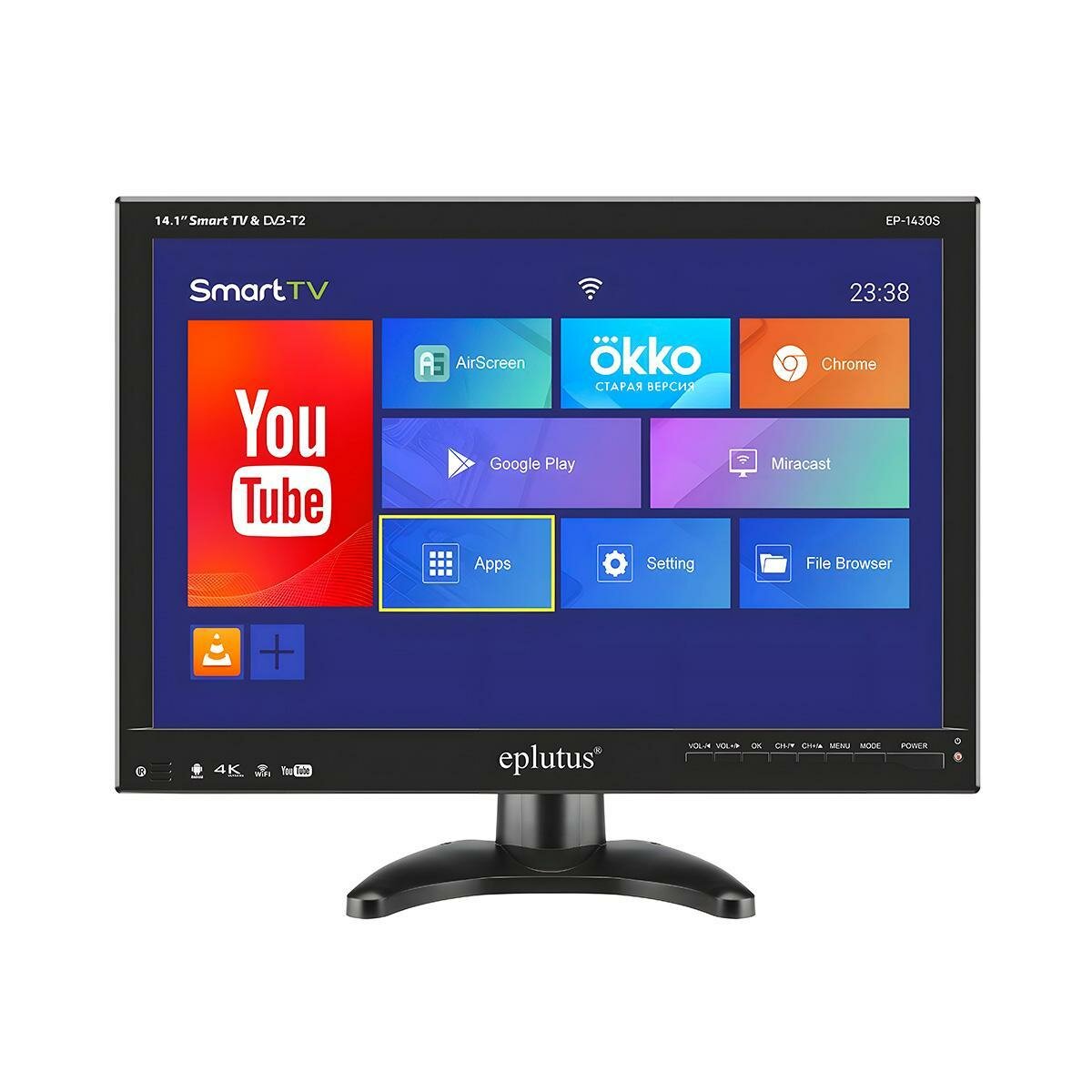 Смарт телевизор с цифровым тюнером DVB-T2/C 14" Eplutus EP-1430-S (RU) (K5884RU) / HDMI, HD / USB. Аккумулятор 2500мАч. Экран: 1920x1080 цветной интересное: