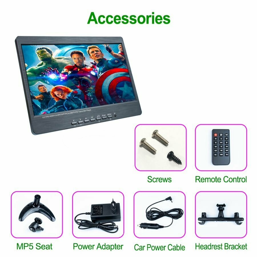 13,3-дюймовый HD IPS LCD-дисплей 1080P автомобильный подголовник плеер MP5 с кронштейном для подголовника интересное: