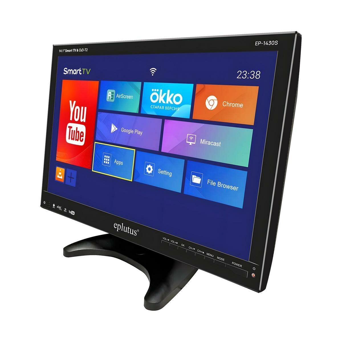 Маленький умный ручной телевизор, смарт телевизор на Android 12 Eplutus Mod: EP-1430(S) 14" цветной TFT ЖК, черный. Встроенный аккумулятор 2500 m интересное: