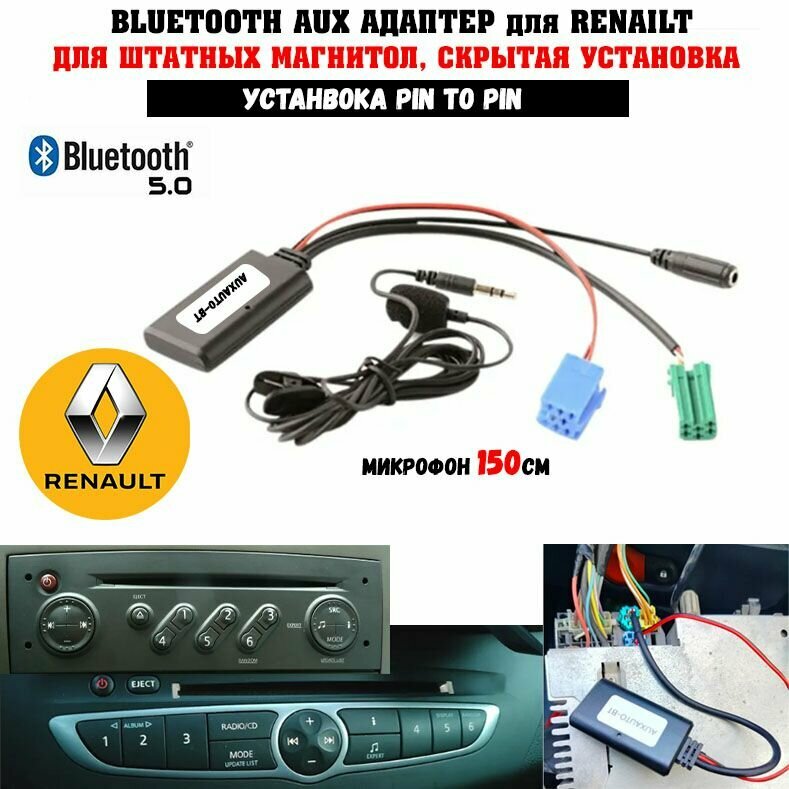 Купить Bluetooth AUX аудио адаптер для Renault (с микрофоном 3,5 мини-джек папа)