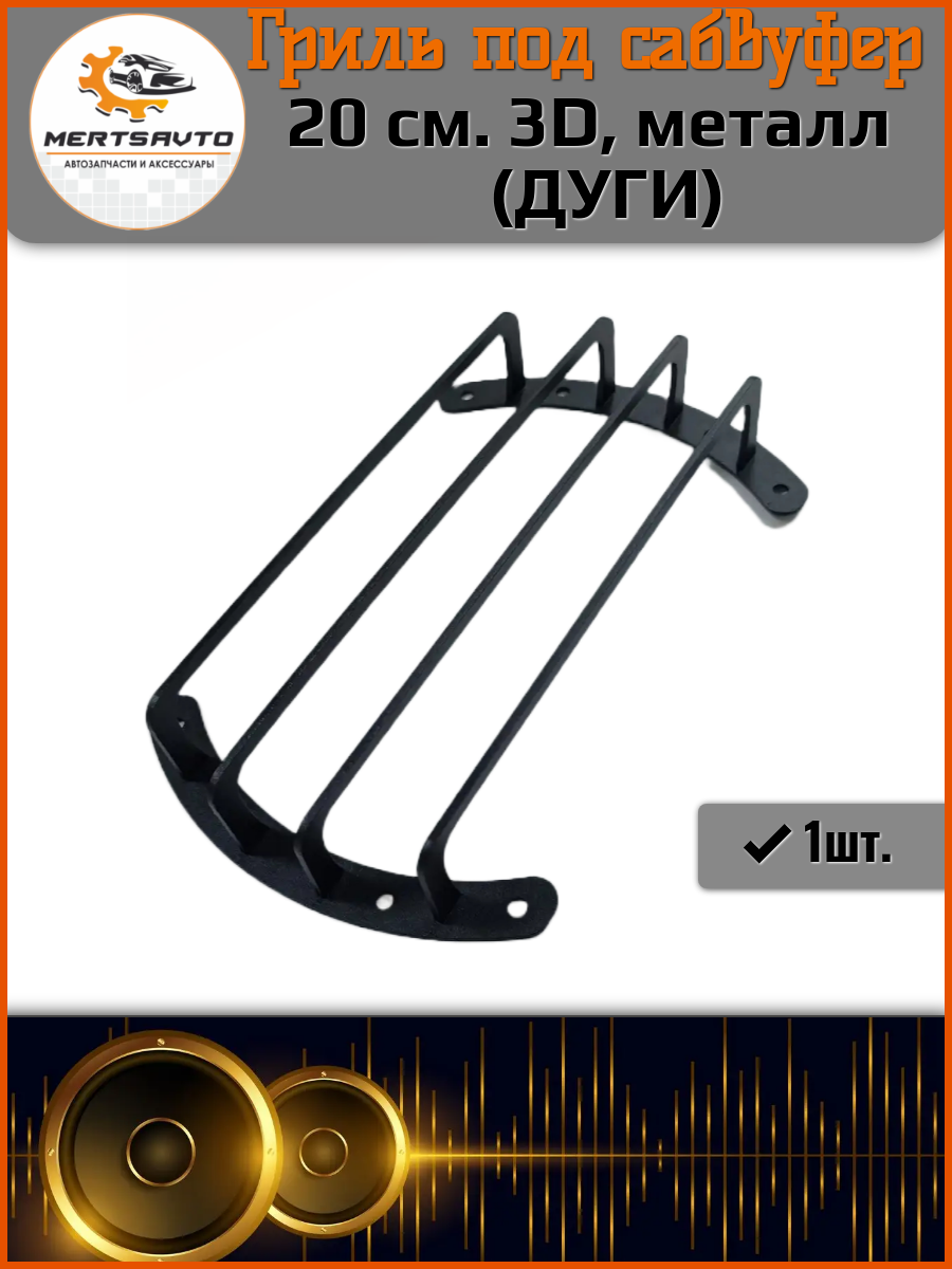 Акустические сетки Mertsavto, "дуги" для сабвуфера, 20 см, 3D, металл, черные, 1шт интересное: